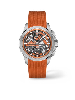 Independence Skeleton Chrono 42 mm, Edelstahl mit orangem Kautschukarmband, Manufakturkaliber (NK24/1) mit Chronographenfunktion | Referenz-Nr. NN200069
