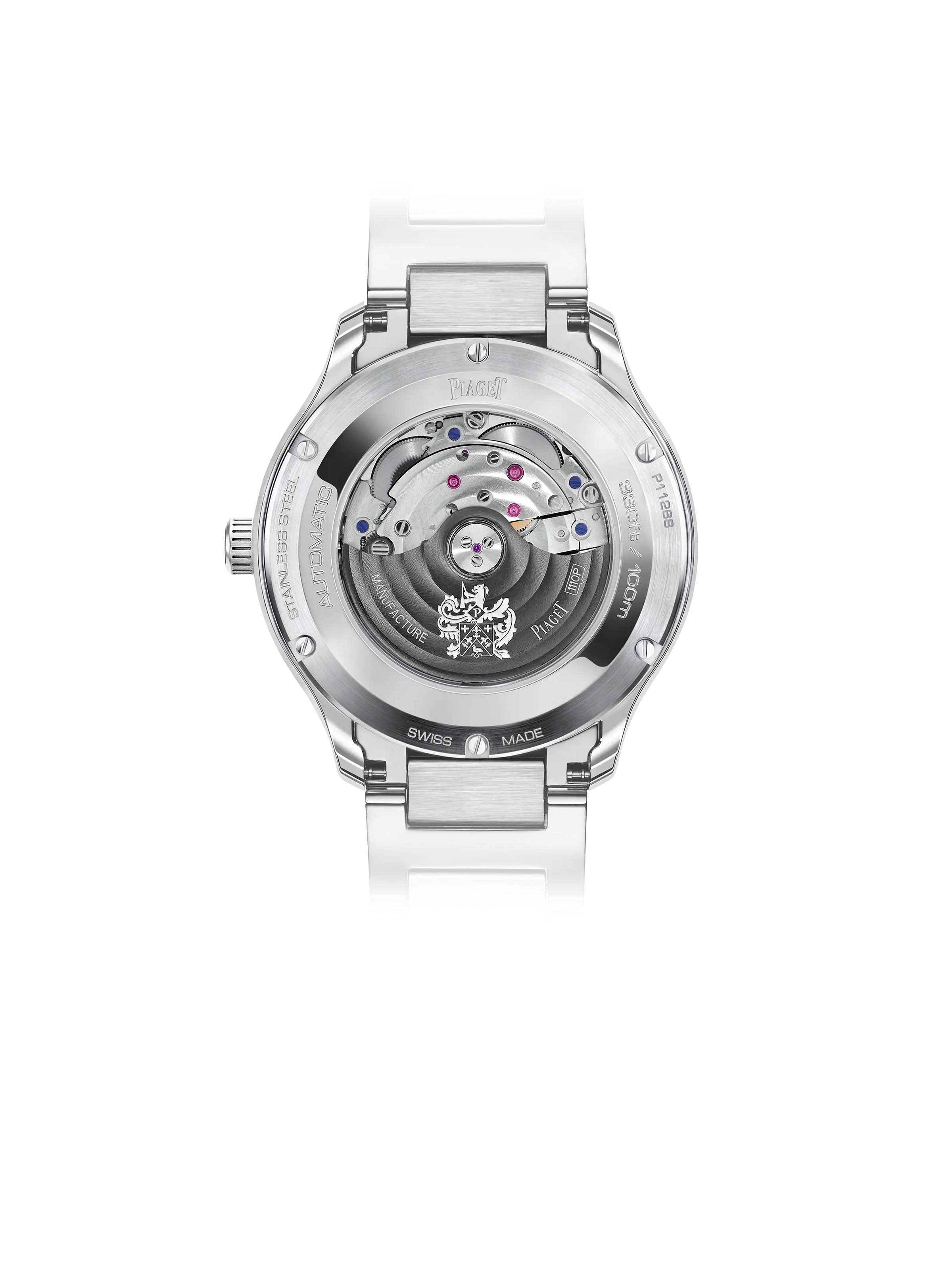 Die Piaget Polo Ref. G0A50016 ist eine Uhr, welche die Essenz maskuliner Eleganz einfängt. Mit ihrem 42 Millimeter großen Edelstahlgehäuse spricht sie eine klare Designsprache, die von Stärke und Präzision zeugt. Das schwarze Zifferblatt setzt mit seinen Indexen einen markanten Kontrast, während die zentrale Sekunde das Zeitgeschehen kontinuierlich verfolgt. Ein Highlight ist der Saphirglasboden, der den Blick auf das Herzstück, das Manufakturkaliber 1110P, freigibt. Dieses Automatikwerk verspricht mit einer Gangreserve von 50 Stunden Zuverlässigkeit und technische Finesse. Die Wasserdichtigkeit bis 10 bar und das graue Edelstahlarmband mit Faltschließe unterstreichen die sportliche Note dieser Uhr. Piaget beweist mit diesem Modell einmal mehr, dass Luxus und Leistungsfähigkeit Hand in Hand gehen.