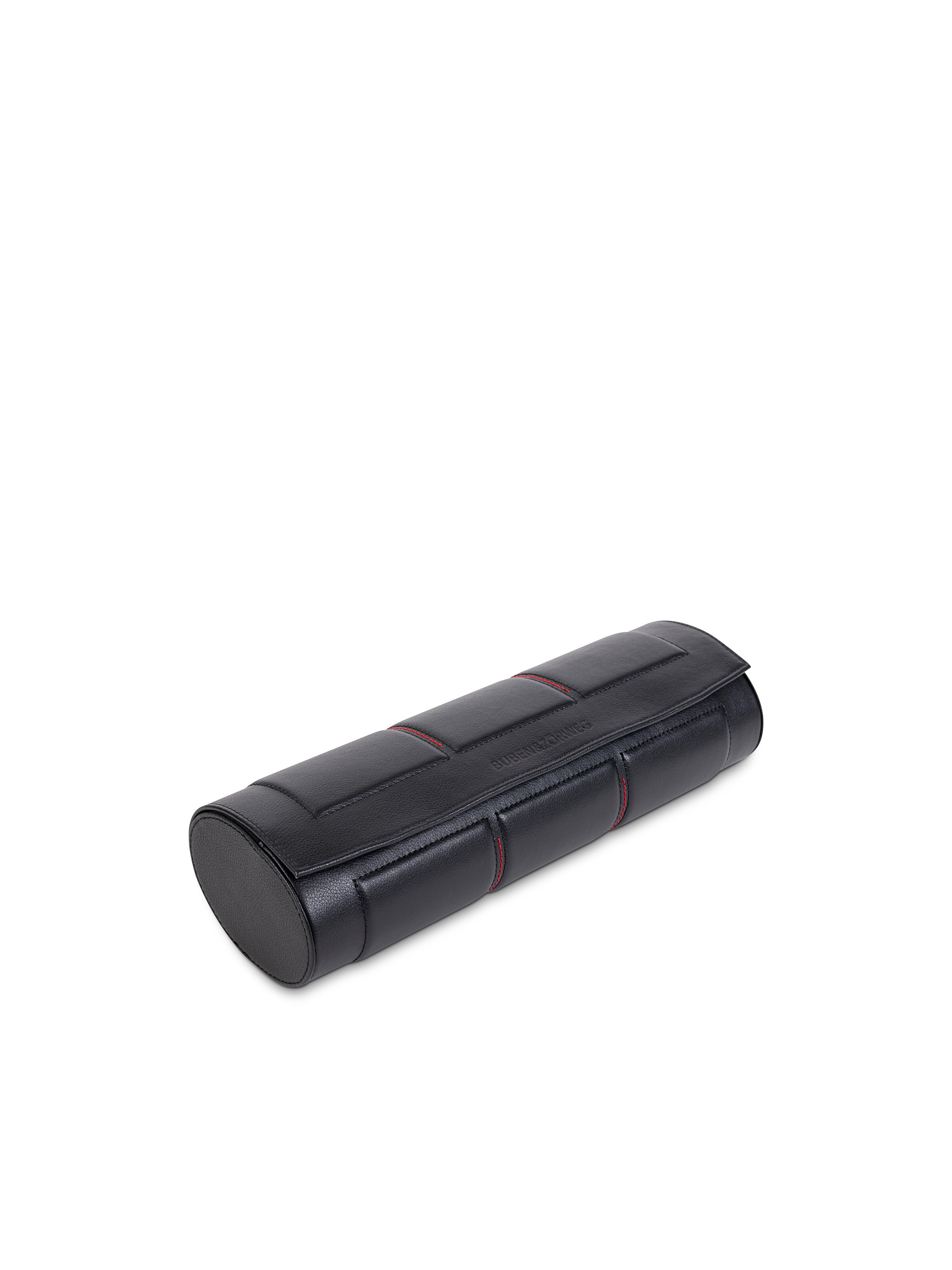 Die handgenähte Uhrenrolle Buben & Zörweg Nitro 3 Leder Schwarz Rot (Ref. Nitro 3 Leder Schwarz Rot 120041003) ist ein unentbehrliches Accessoire für Sammler und Uhrenliebhaber, die sich als Weltenbummler verstehen. Langlebig und gleichzeitig stilvoll bewahrt die Box aus schwarzem Leder und einer Innenausstattung aus feinstem Velours Ihre Uhren vor Staub und Kratzern sicher auf. Rote Ziernähte lockern das elegante Design auf. Das Maß ist mit 26 x 10 x 7,1 Zentimetern kompakt sowie übersichtlich und kann bis zu drei Zeitmesser gleichzeitig aufnehmen. So haben Sie immer und überall die richtige Uhr im Handumdrehen griffbereit.