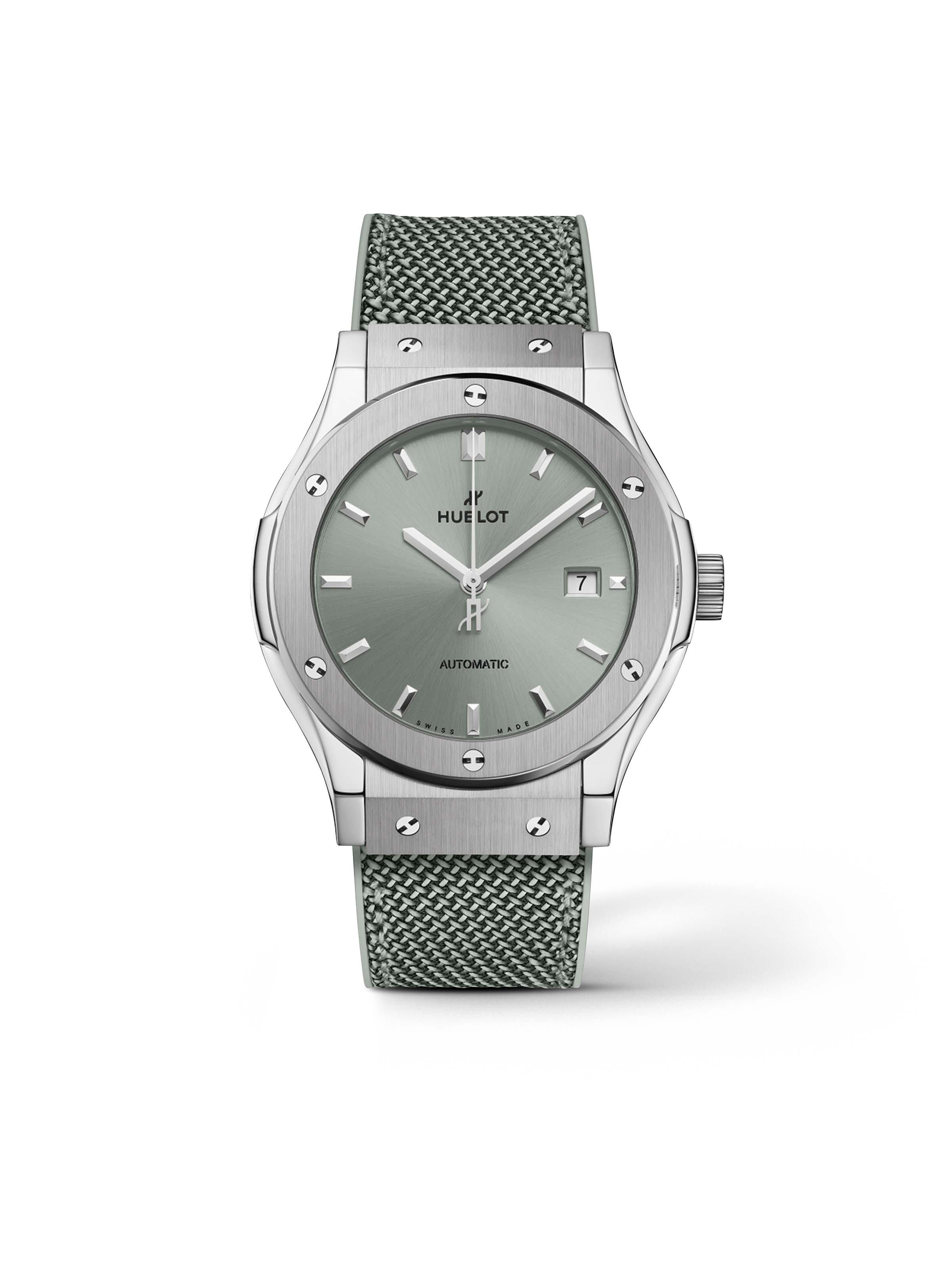 Classic Fusion Titanium Sage Green 42 mm, Titan mit grünem Kautschukarmband, Automatik-Kaliber HUB1110 mit Datumsanzeige | Reference Number HB110311