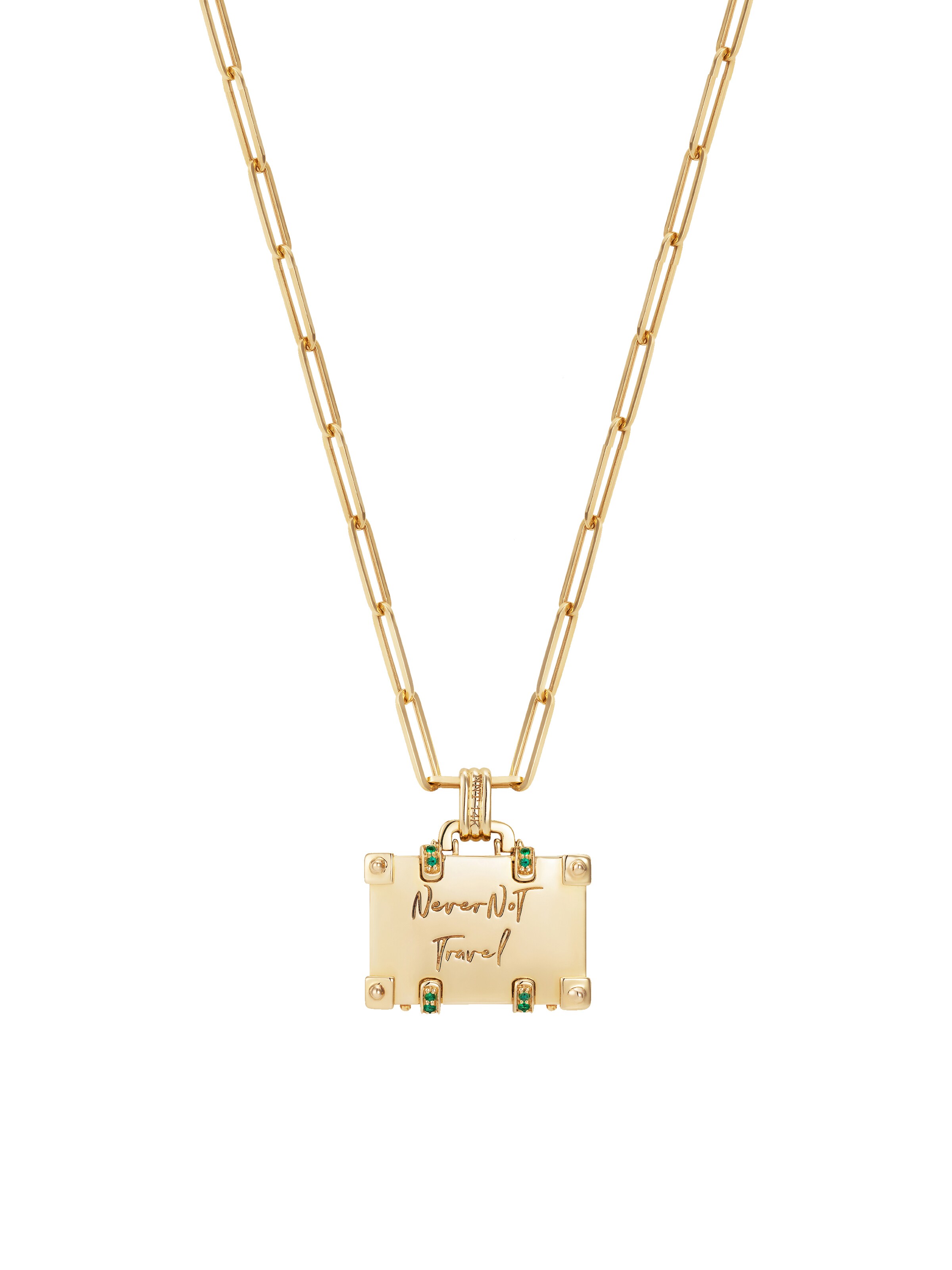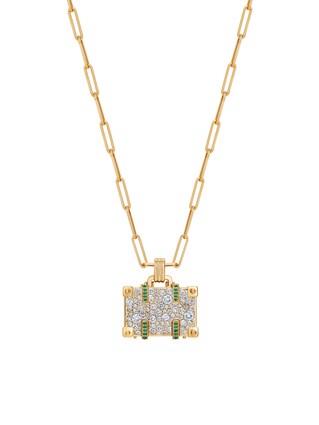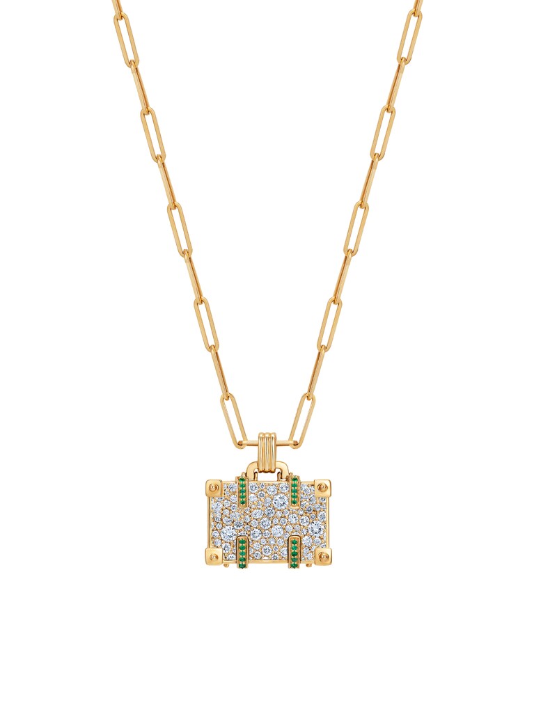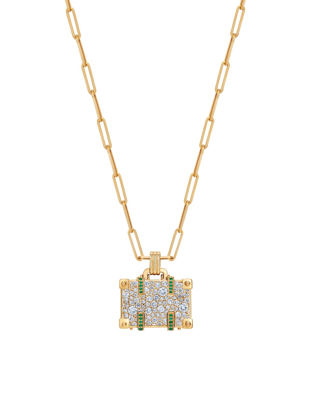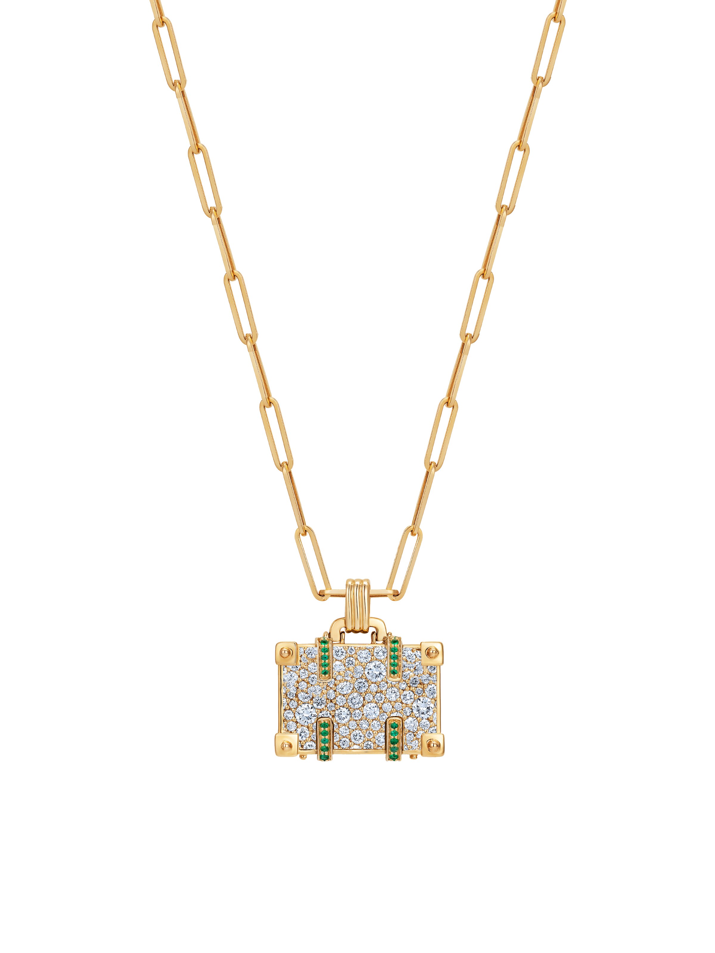 "Big Shot Weekend" Pendant 14k yellow gold, 111 brilliant-cut diamonds 1.40 ct, 30 green emeralds 0.14, 42 cm length | Reference Number 22AH0074
