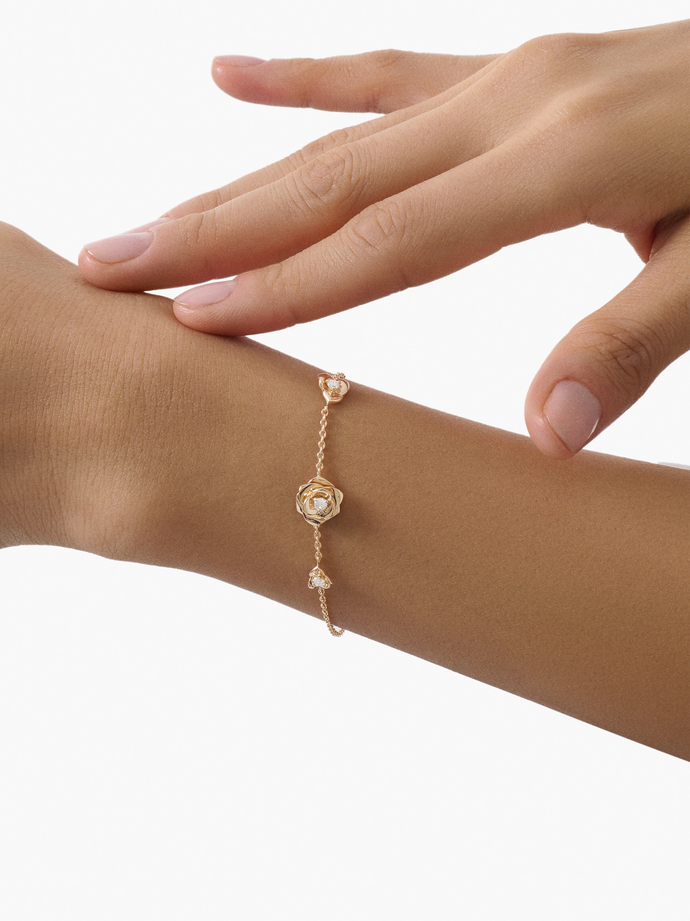 Rose Bracelet 18k rose gold, 3 brilliant-cut diamonds 0.13 ct, length 17 cm | Reference Number 40AB1821