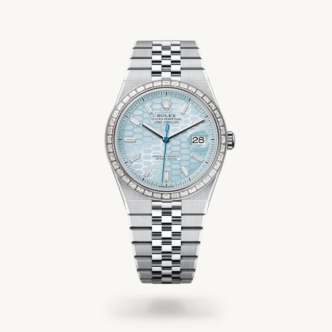 Rare and precious, platinum is striking for its silvery whiteness and vibrant luminosity. It is among the densest and heaviest metals in the world, distinguished by unique chemical and physical properties such as exceptional corrosion resistance. Paradoxically, it is also soft, elastic and highly malleable, which makes machining and polishing especially difficult, demanding an extremely high degree of skill. Rolex always uses 950 platinum, an alloy consisting of 950‰ (thousandths) platinum, painstakingly crafted in-house by the fine metalworkers at Rolex. The noblest of metals for the finest of watches.