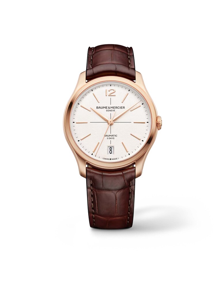 Clifton Baumatic 39 mm, 18k rose gold with brown alligator leather strap, self-winding manufacture caliber BM13-1975 A with date display | Reference Number BM350092