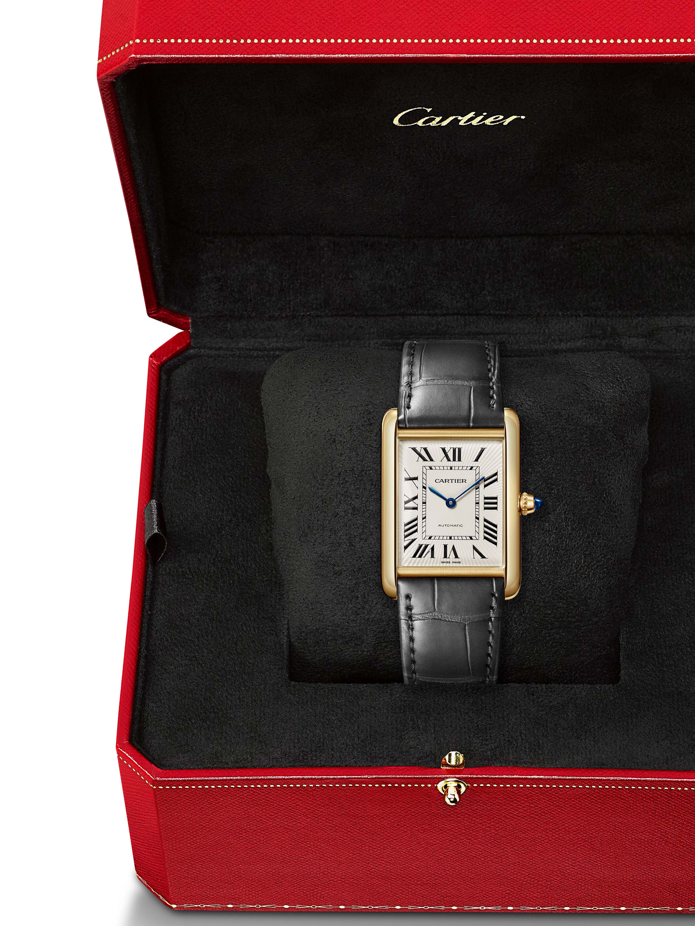 Tank Louis Cartier - large model 38.1 x 27.75 mm, 18k yellow gold with gray alligator strap, self-winding caliber 1899 MC | Reference Number CA180023