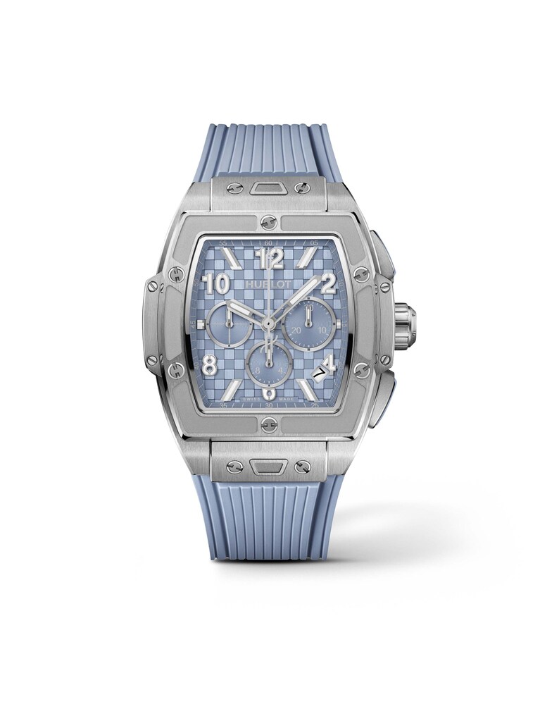 Die Spirit of Big Bang Titanium Coal Blue Ref. 642.NL.717B.RX vereint kraftvollen Sportgeist mit der unverkennbaren Eleganz von Hublot und setzt in ihrem 42 Millimeter großen Titangehäuse ein starkes Statement. Das tiefblaue Zifferblatt mit markanten Index-Ziffern zieht alle Blicke auf sich und harmoniert perfekt mit dem blauen Kautschukarmband, das Komfort und Stil vereint. Angetrieben vom präzisen Automatik-Kaliber HUB4700 mit 50 Stunden Gangreserve bietet sie nicht nur eine Chronographenfunktion und Datumsanzeige, sondern auch höchste Zuverlässigkeit bei jedem Einsatz. Mit einer Wasserdichtigkeit bis 10 bar ist die Spirit of Big Bang Titanium Coal Blue der perfekte Begleiter für sportliche Abenteuer wie für elegante Auftritte.