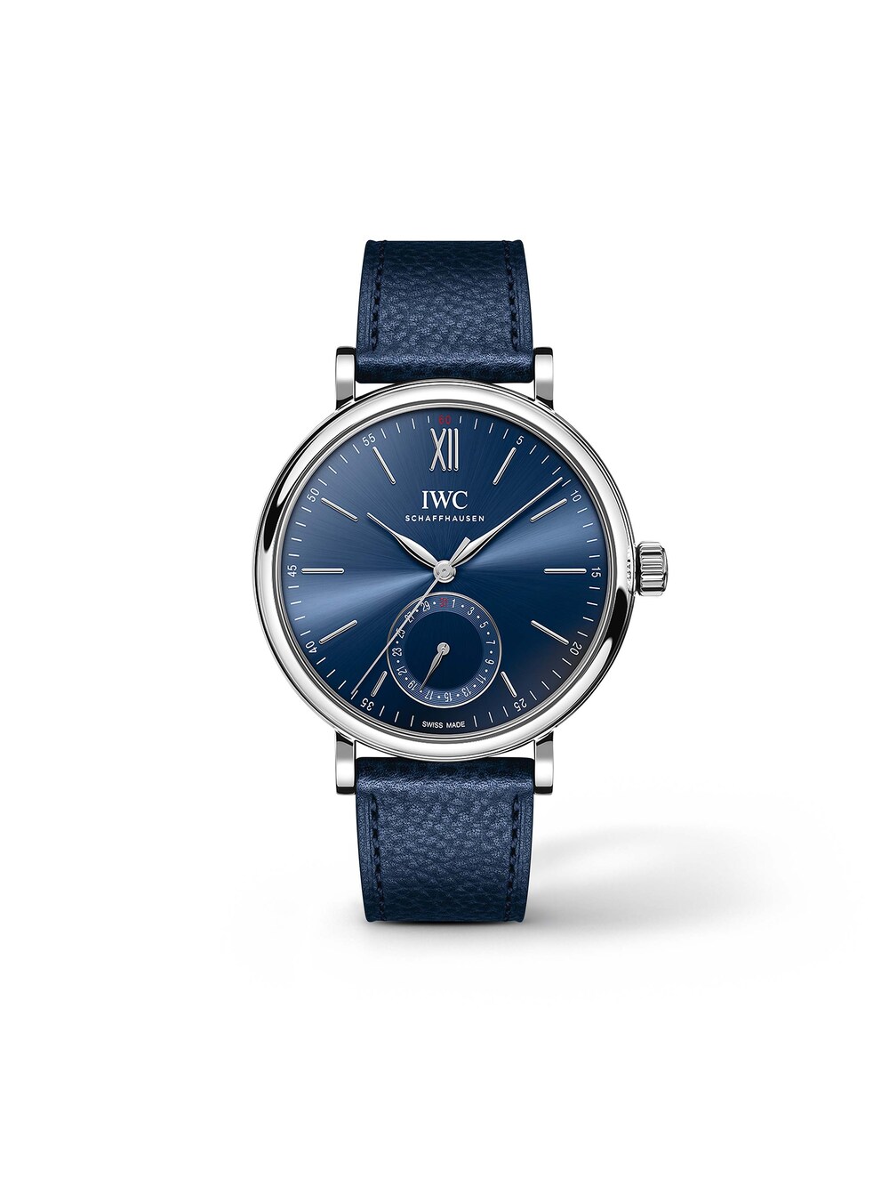 Portofino Automatic Pointer Date Laureus 39 mm, stainless steel with blue calfskin strap, self-winding caliber 35160 with date display | Reference Number IW010177