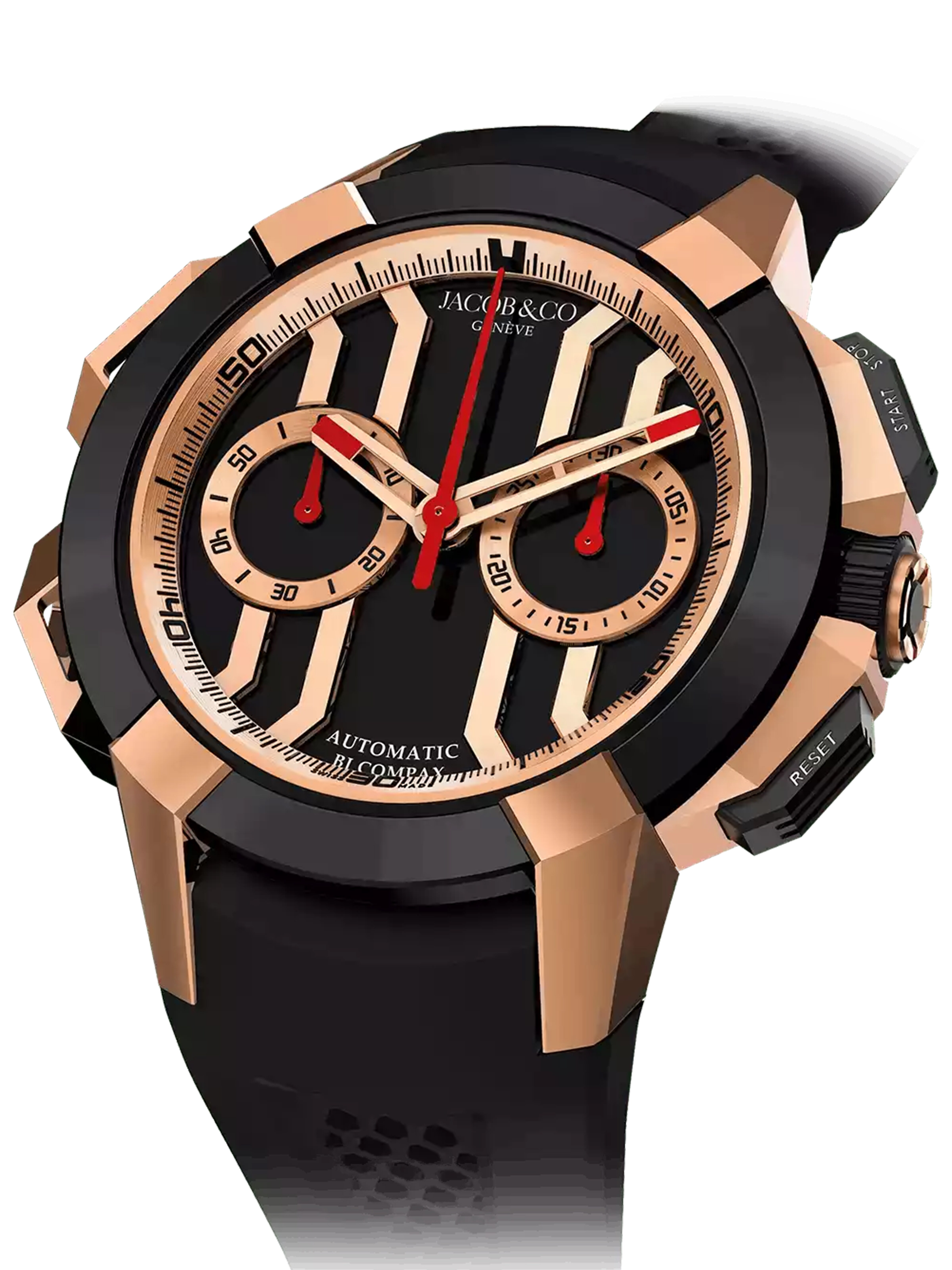 Epic X Chrono 44 - Rose Gold 44 mm, 18k rose gold with black rubber strap, self-winding manufacture calibre JCAA05 with chronograph function | Reference Number JB000001