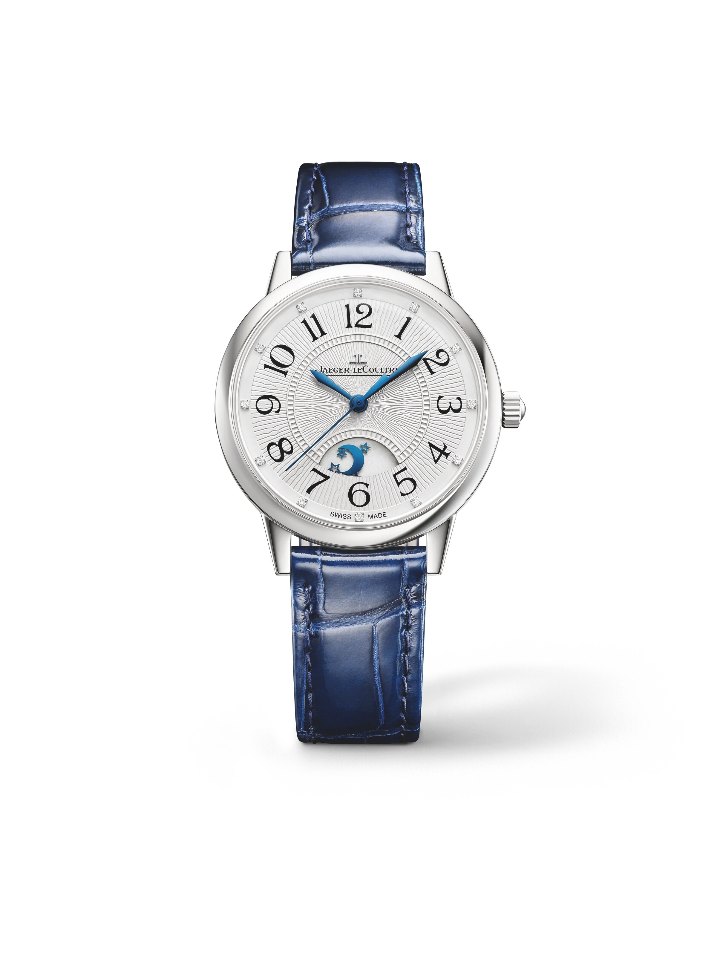 Rendez-Vous Night & Day Medium 34 mm, stainless steel with blue alligator-skin strap, self-winding manufacture calibre 898A/1 | Reference Number JC000067
