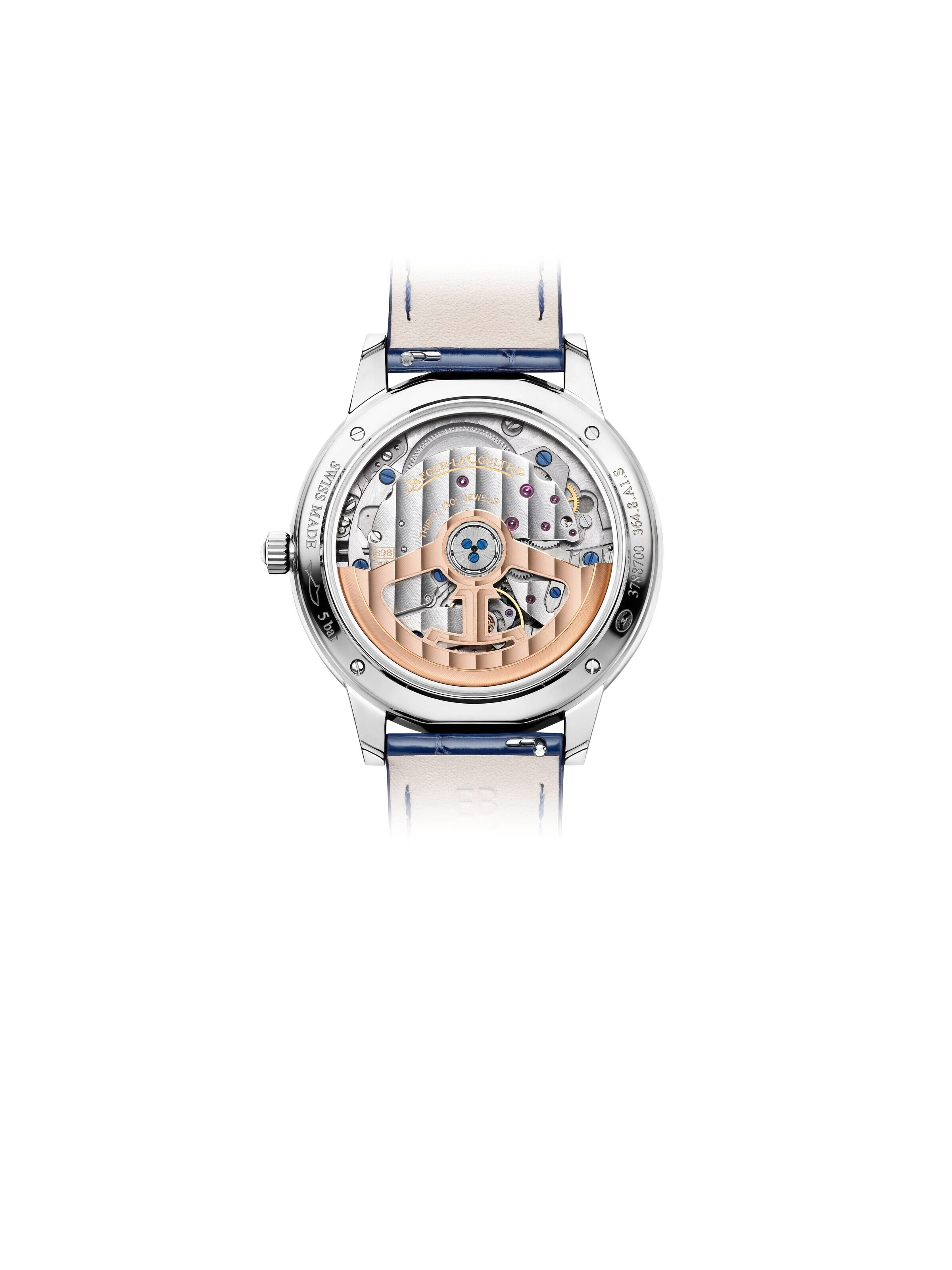 Refined elegance meets precision watchmaking: this Jaeger-LeCoultre wristwatch (Ref. 3448411) displays the time in a particularly balanced form. The 34-millimeter stainless steel case sits comfortably on the wrist and frames a silver-colored dial, which has a clear yet luxurious look with diamond accents and Arabic numerals. Slim hands and a central seconds hand ensure a harmonious and easy-to-read display of the time. Inside, the automatic manufacture caliber 898A/1 offers a power reserve of up to 40 hours and meets the high standards of the 1000 Hours Control. A blue alligator leather strap with a folding clasp complements the elegant character and gives the timepiece a striking yet timeless touch that is just as impressive in everyday life as it is on special occasions.
