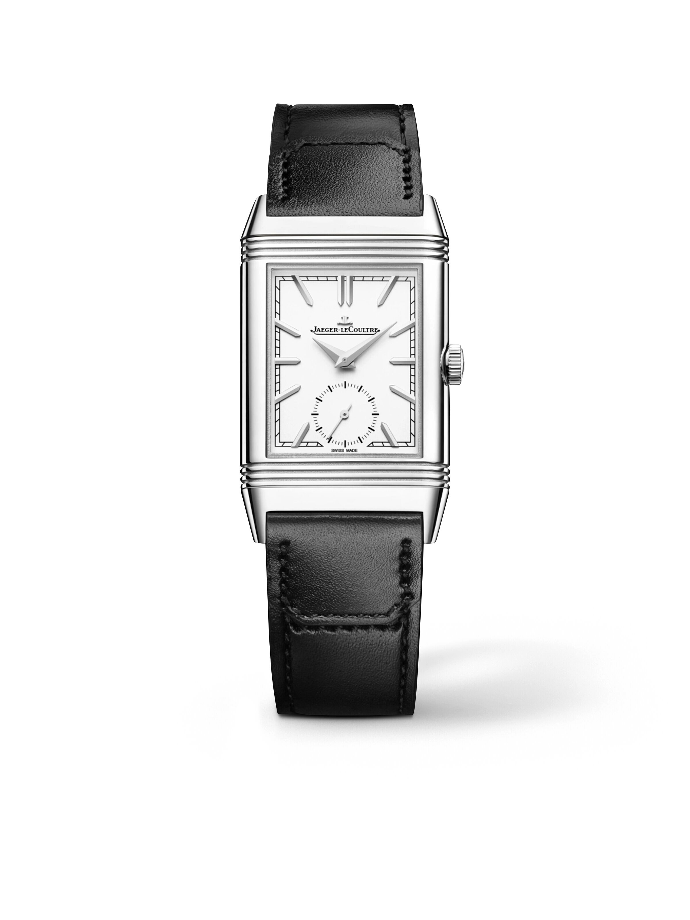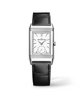 Clean lines, refined proportions, and a touch of Art Deco glamour. The Reverso Tribute Medium Duoface Small Seconds from Jaeger-LeCoultre reinterprets the Reverso’s iconic rectangular shape with modern precision. The reversible stainless steel case reveals two harmoniously designed dials, combining different styles in a wristwatch. The 42.9-millimeter case ensures a striking yet balanced appearance on the wrist. The result is a versatile watch that adds a touch of style to everything from everyday life to special occasions.