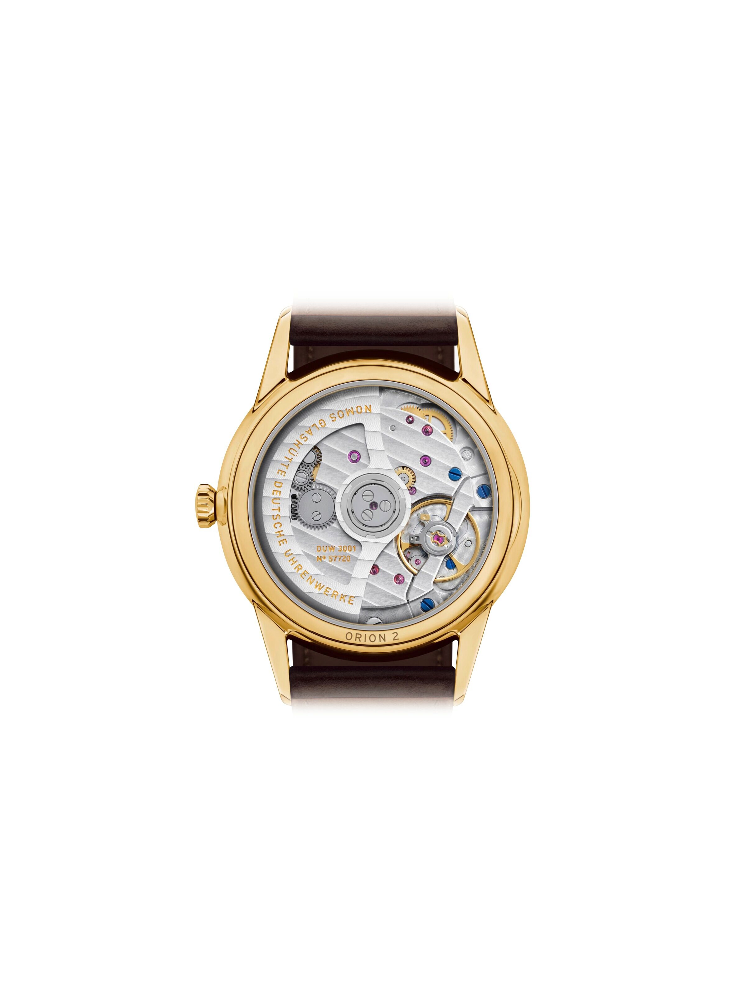 Orion neomatik Doré 36.4 mm, 18k yellow gold with a brown cordovan strap, self-winding manufacture caliber DUW 3001 | Reference Number NO300071