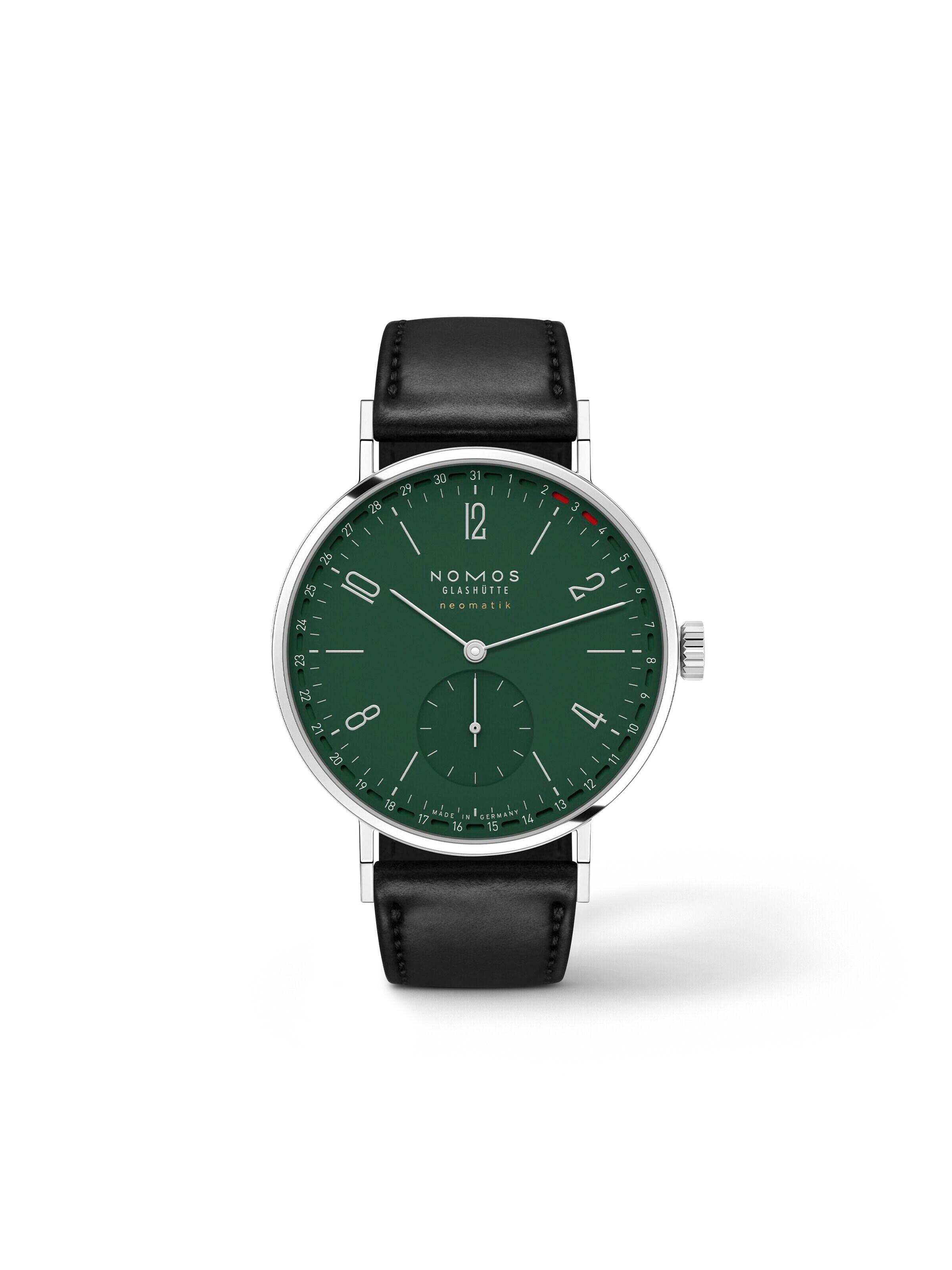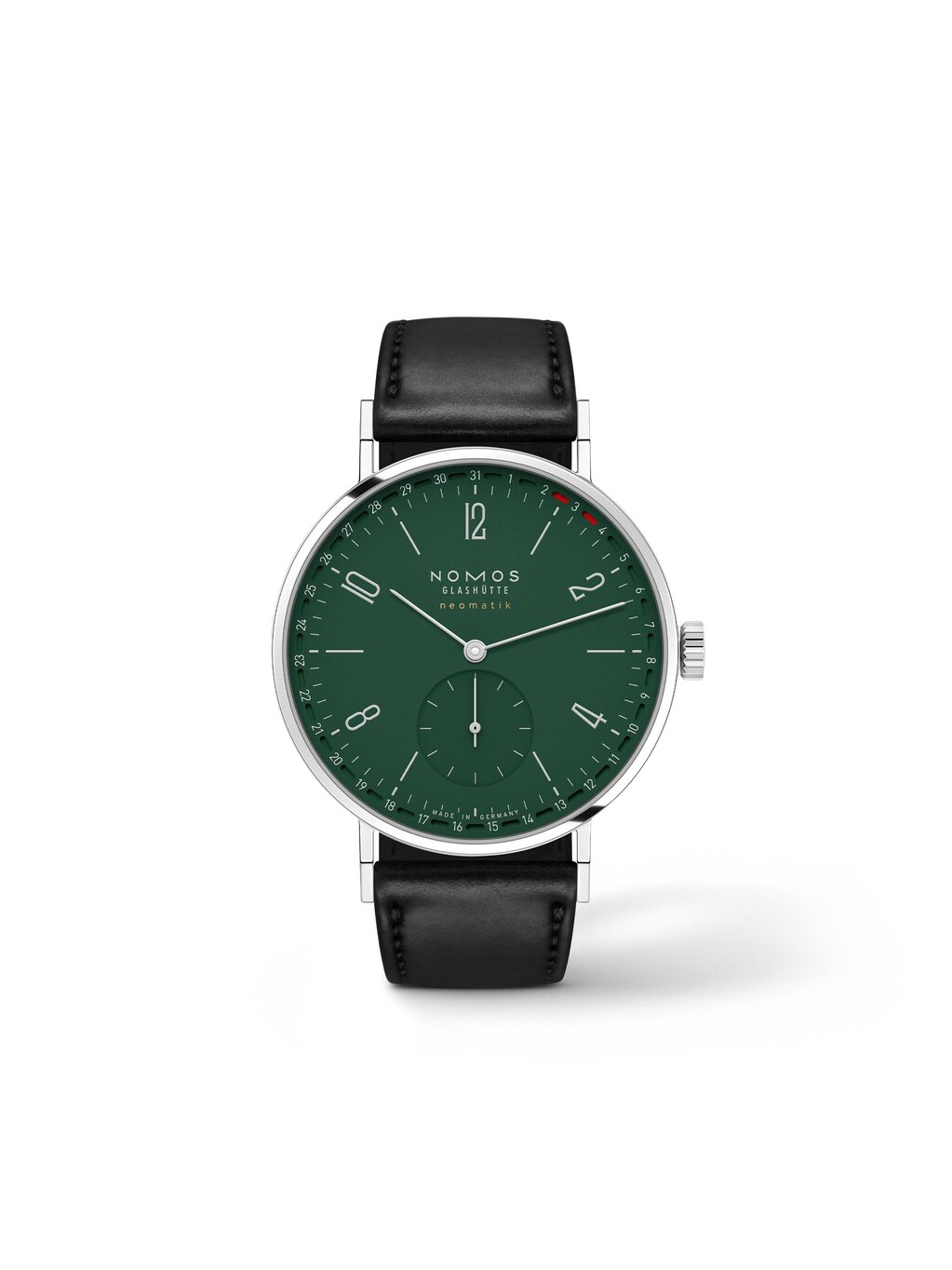 Tangente neomatik 38 Update Forest green 38.5 mm, stainless steel with a black cordovan strap, self-winding manufacture caliber DUW 6101 with date display | Reference Number NO000161
