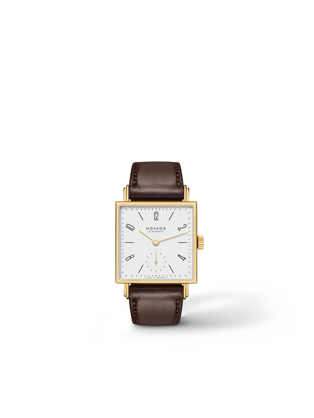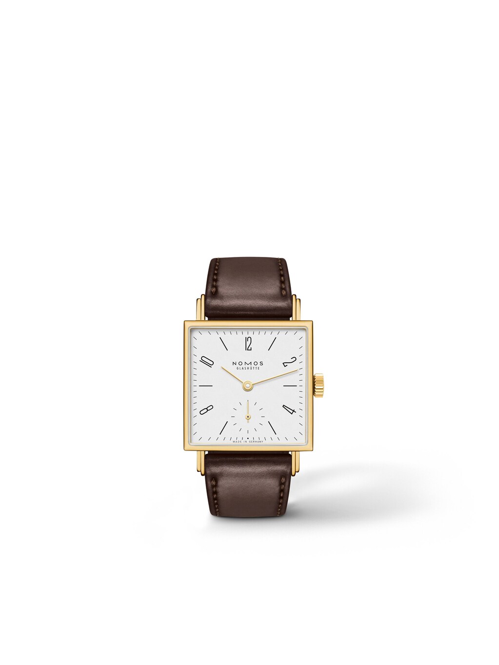 Tetra 27 Doré 27.5 x 27.5 mm, 18k yellow gold with a brown leather strap, hand-wound manufacture caliber DUW 4001 | Reference Number NO400084