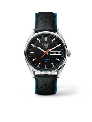 Carrera Day-Date 41 mm, stainless steel with black leather strap, self-winding manufacture calibre TH31-02 with date display | Reference Number TH800457