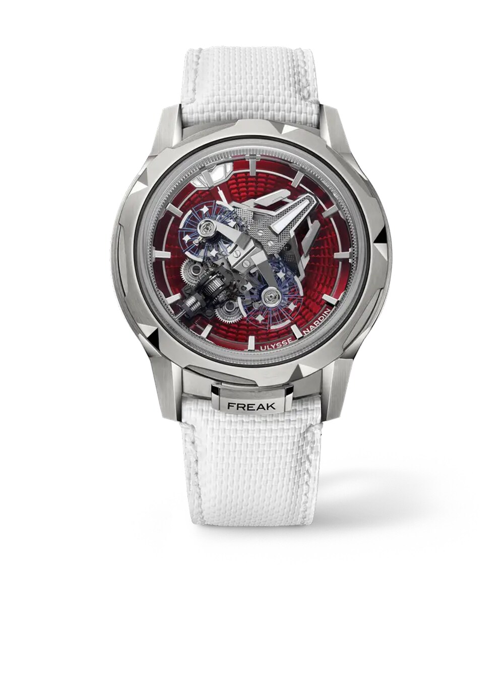 The Ulysse Nardin Freak S Enamel (Ref. 2513-500LE-6AE-RED/3A) is more than a timepiece – it is a statement of modern watchmaking. Housed in a 45-millimeter titanium case, it combines lightness with robustness, while the vibrant red dial emphasizes its bold, avant-garde aesthetic. The white rubber strap adds a sporty-elegant contrast and exceptional comfort. At its heart beats the innovative UN-251 automatic manufacture caliber, delivering precision and technical brilliance with a 72-hour power reserve. Protected by scratch-resistant sapphire crystal, the watch offers a mesmerizing view of its mechanical movement. With water resistance up to 3 bar and striking index markers, this timepiece fuses technical finesse with avant-garde design. The Freak S Enamel is a tribute to the future of haute horlogerie, crafted for the modern watch enthusiast who values precision, innovation, and unmistakable style.