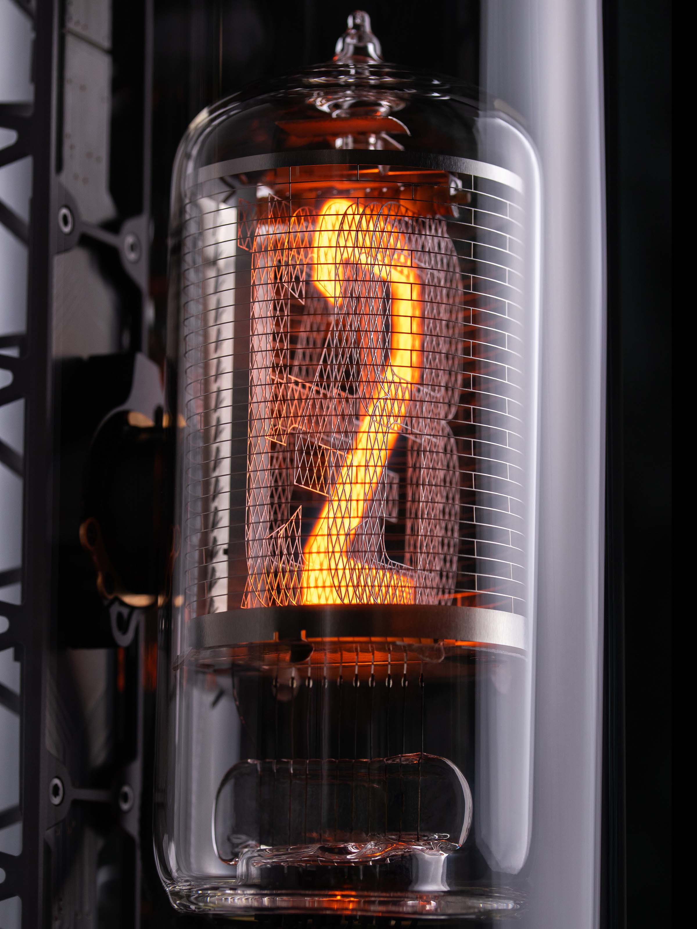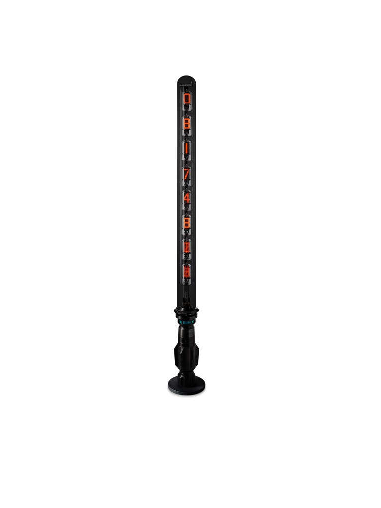 The Urwerk Space-Time Blade Black is more than a timepiece: It is a space-filling light sculpture. In a cylinder made of borosilicate glass measuring over 1.30 meters in height, red-glowing Nixie tubes visualize not only the time, but also the date and the Earth's rotation. A black anodized case gives the object a floating appearance and reinforces its minimalist and futuristic look. The specially developed electronics control the complex light architecture, which was conceived in collaboration with tube artist Dalibor Farny. This time object is not only meant to measure time, but to make it a physical and emotional experience. Limited to 33 pieces worldwide, each Space-Time Blade Black represents this consistently thought-out vision.