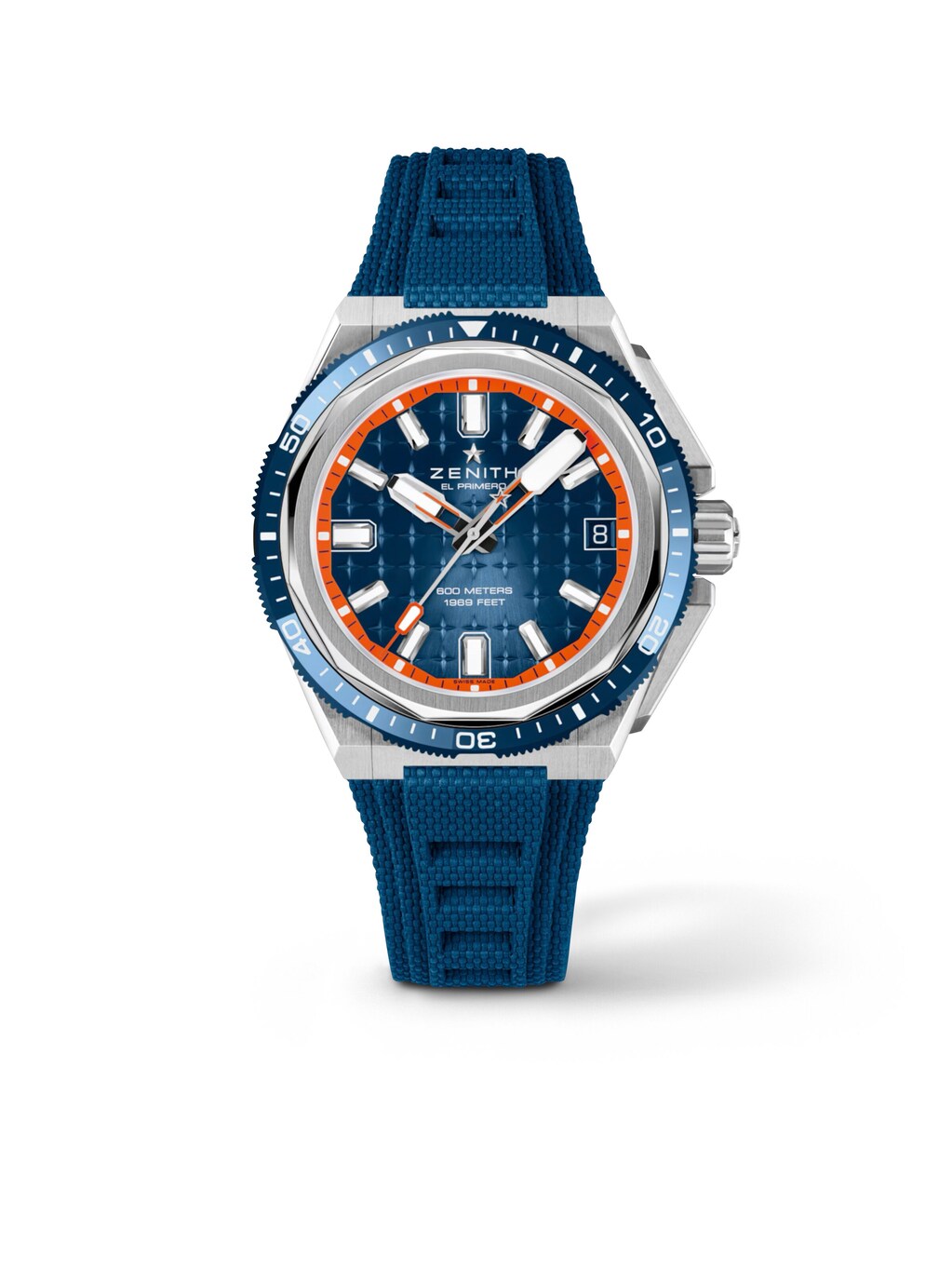 The Zenith Defy Extreme Ref. 95.9601.3620/51.I301 embodies modern watchmaking in a striking, technically inspired design language. The 42.5-millimeter titanium case ensures an expressive appearance on the wrist while remaining pleasantly light. The blue dial, with its clearly designed indices and central seconds hand, forms a dynamic unit that allows the time to be read at a glance. Inside, the automatic El Primero 3620 CS caliber offers generous reserves with a power reserve of up to 60 hours. A blue rubber strap with a folding clasp complements the sporty, confident character and guarantees a secure fit in any situation. Water resistance to 6 bar increases its suitability for everyday use, while the ceramic bezel emphasizes robust elegance. Sapphire crystal allows a view of the dial and movement and underlines the precision and manufacturing quality of this striking men's watch.