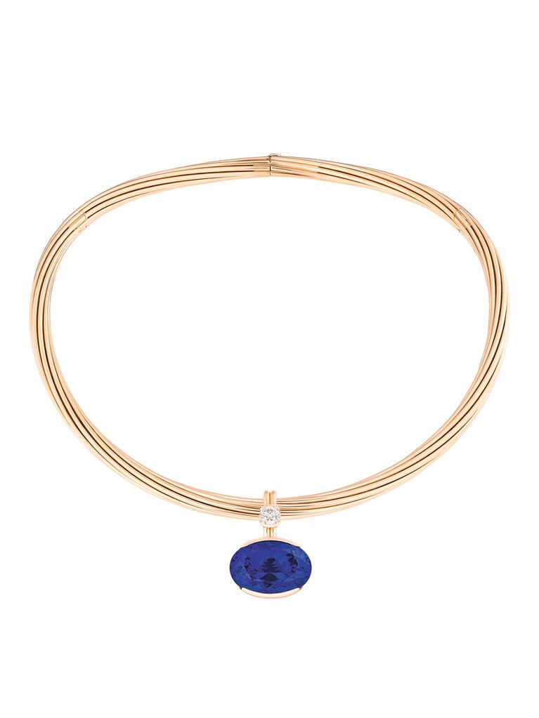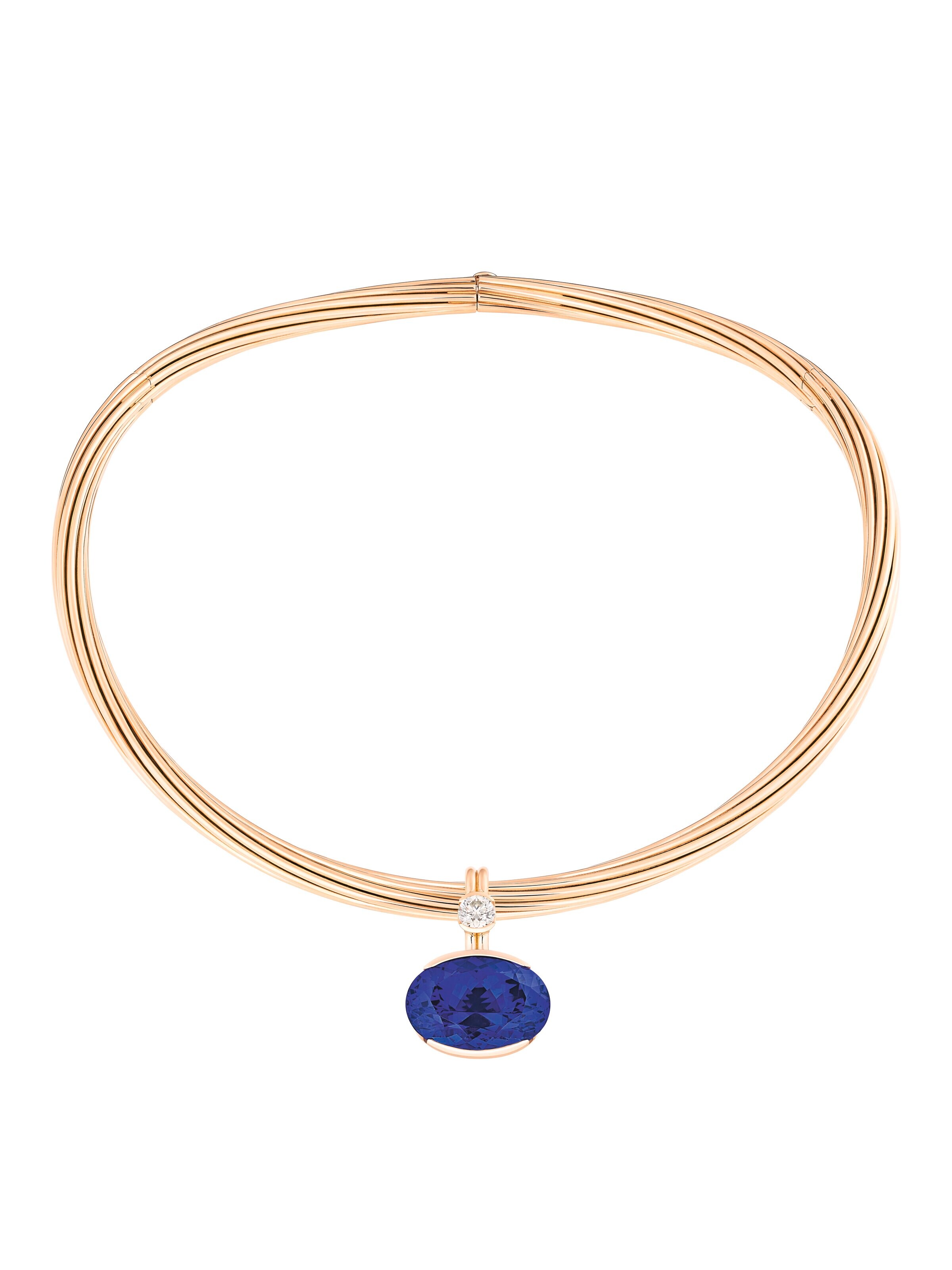 Anniversary Necklace Helioro Statement 18k rose gold, 1 oval-cut tanzanite 27.79 ct, 1 brilliant-cut diamond 0.75 ct, with detachable pendant | Reference Number 60CO0576
