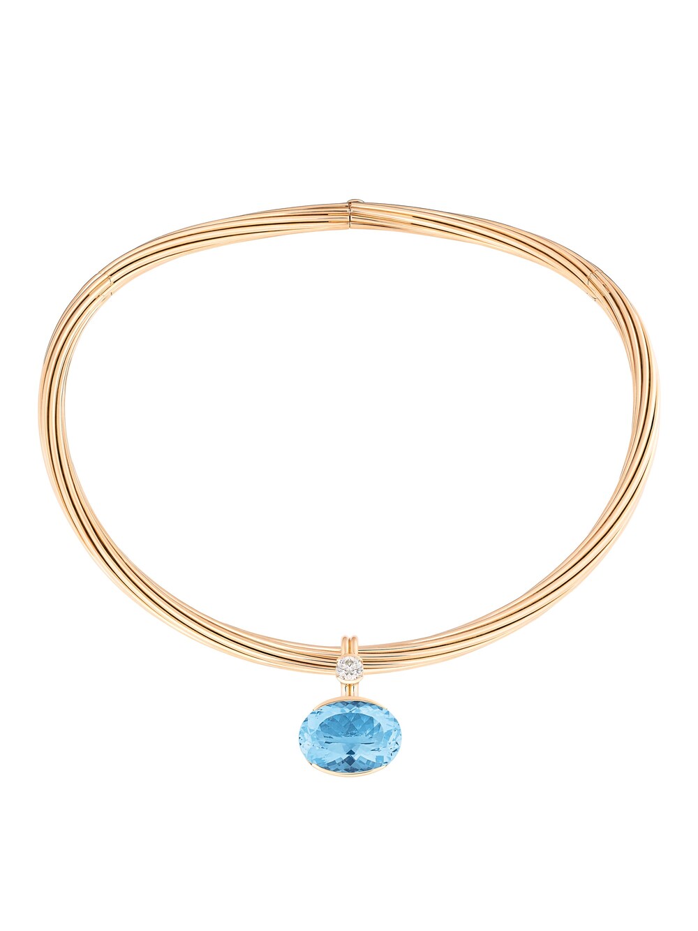 Anniversary Necklace Helioro Statement 18k rose gold, 1 oval-cut aquamarine 23.44 ct, 1 brilliant-cut diamond 0.75 ct, with detachable pendant | Reference Number 60CO0579