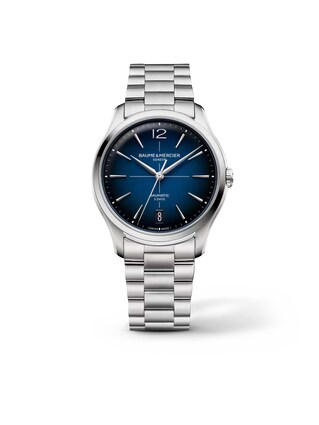 The Clifton Baumatic M0A 10792 from Baume & Mercier is not just a timepiece; it is a declaration of elegance and precision engineering designed for the modern man. Crafted with a keen eye for detail, this watch features a striking blue dial that captures the essence of sophistication, complemented by sleek index hour markers for a clean, refined look. The heart of this masterpiece is the BM13-1975 A caliber, a self-winding manufacture movement renowned for its reliability and a remarkable power reserve of 120 hours, ensuring that time is always on your side. Encased in robust stainless steel with a diameter of 39 millimeters, it is perfectly sized for any occasion, while the sapphire crystal case back offers a glimpse into the watch's intricate workings. Water-resistant to 5 bar, it is as functional as it is stylish. The stainless steel bracelet, secured with a folding clasp, adds a final touch of class, making the Clifton Baumatic not just a watch, but a piece of art for the wrist.