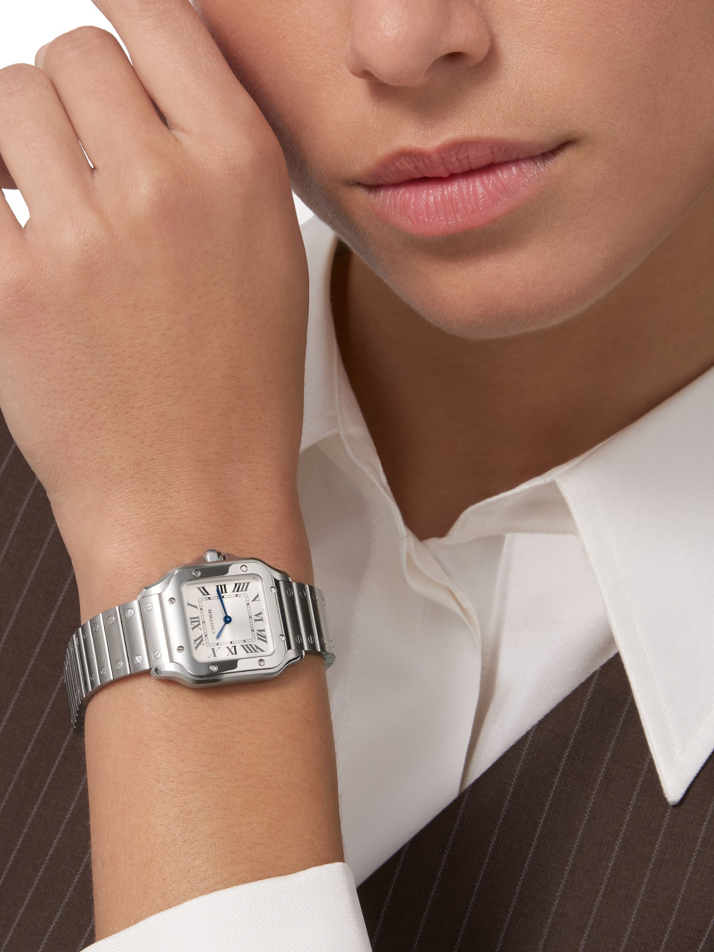 Discover the latest marvel from Cartier's esteemed Santos collection, the WSSA0082, a unisex timepiece that seamlessly blends the boundaries of classic elegance and modern innovation. As a highlight of this year's fair, it stands out not just for its design but for its commitment to precision and durability. Crafted from stainless steel, this watch is a testament to Cartier's dedication to excellence, featuring a silver dial that elegantly contrasts with the bold Roman numerals, ensuring legibility and timeless style. The central seconds hand adds a dynamic touch to the serene display, while the sapphire crystal glass ensures your timepiece withstands the test of time. Powered by a quartz movement with a manufacture caliber, it promises reliability and precision. The bracelet and bezel, also in stainless steel, enhance the watch's robustness and allure, making it a versatile choice for any occasion. Water-resistant to 3 bar, it's designed to accompany you with confidence through every moment of your day. The Santos WSSA0082 by Cartier: where tradition meets the avant-garde.