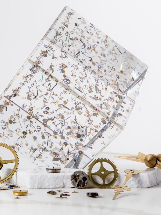 Clocks are more than just timepieces. They can serve as the centerpiece of any room, whether it's the living room or the study. They can sit on a table or hang on a wall, and their designs can be traditional, minimalist, or futuristic. Some clocks, like those by Jaeger-LeCoultre, have windows that allow you to see their sophisticated inner workings. Wall clocks by Wempe Glashütte i/SA and Erwin Sattler feature large pendulums. Qlocktwo clocks are handcrafted masterpieces that display the time in words using an illuminated matrix of letters.