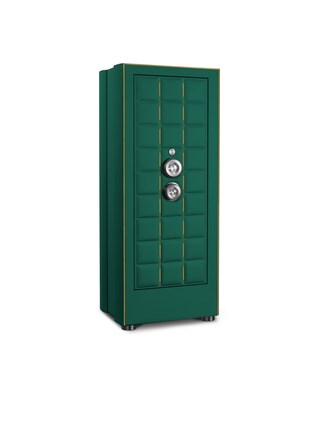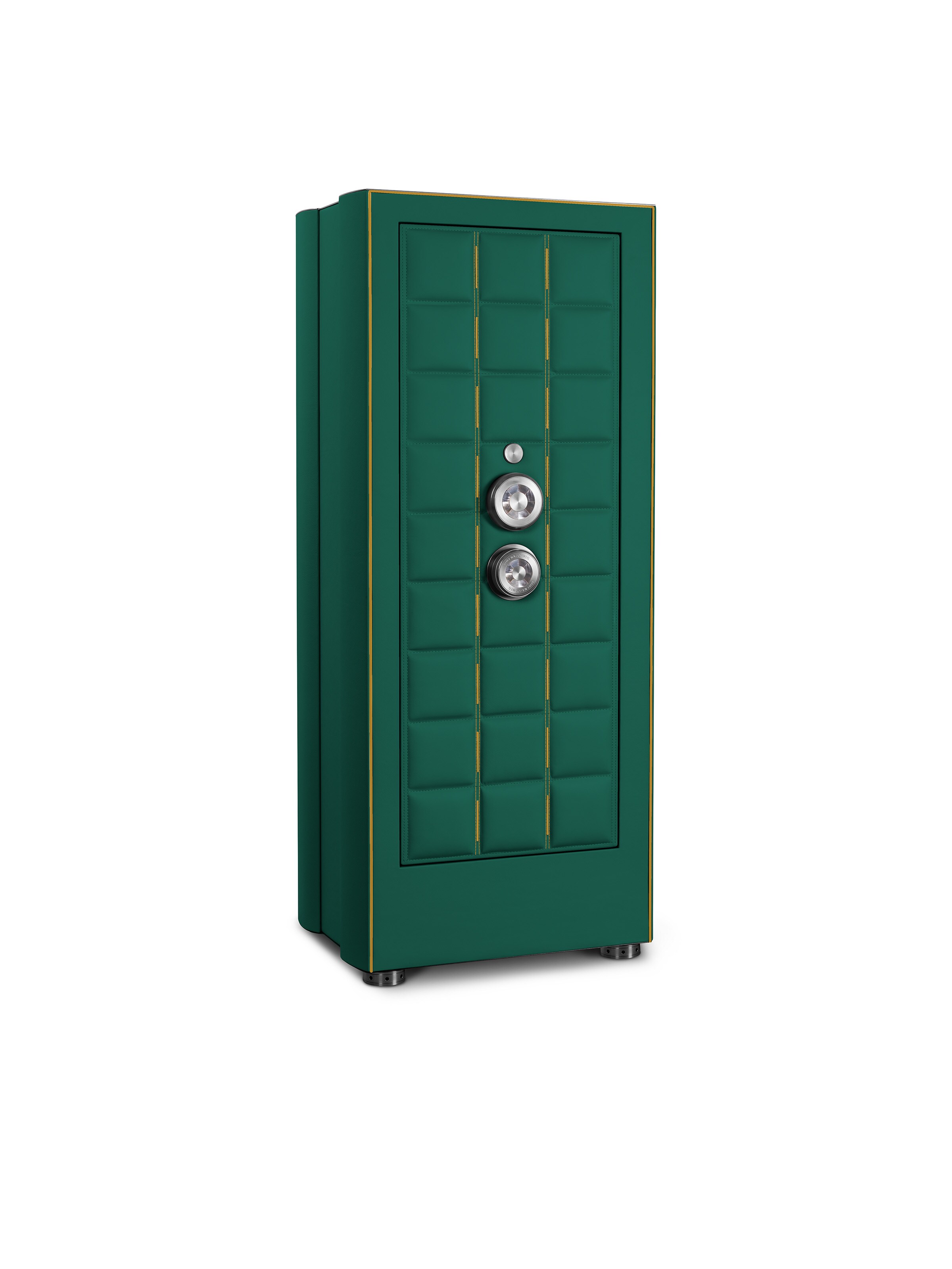 “Soft shell, hard core” is how Buben & Zörweg describes the design concept behind the Orion watch safe, and it is a very fitting description. Covered with the finest jungle green Nappa leather in a quilted chessboard pattern, the certified (VdS I) security technology ensures optimal protection inside. The redundant locking system consists of a seven-digit number block and a backup key. The safe’s interior is made of black velour and features the latest LED technology.