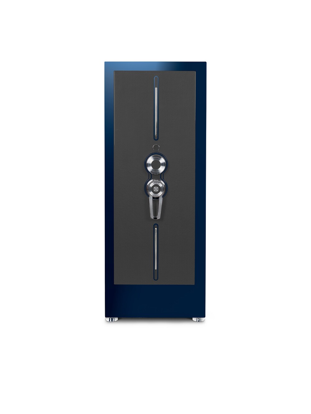 The Turbo XL Carbon from Buben & Zörweg combines innovative materials with bold design to make a watch safe that radiates absolute security from the very first glance. The handmade housing has a dark-blue, metallic racing lacquer and features extraordinary stainless-steel details as well as a carbon front panel. The SI-110 safe boasts class VdS I security and has functionality consisting of a redundant locking system with a seven-digit number block and backup key. The watch winders and multiple drawers offer space for exclusive timepieces and other important documents.