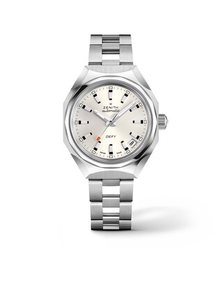 With its 37-millimeter stainless steel case, the ladies’ Defy Revival A3643 (Ref. 03.A3642.67/01.M3642) from ZENITH embodies a refined balance of heritage design and contemporary elegance. The silver dial presents a clean, luminous character that enhances legibility while subtly highlighting the watch’s vintage-inspired identity. Housed within the robust case is the self-winding manufacture caliber ELITE 670, an automatic movement offering a power reserve of up to 50 hours and featuring a practical date display. Engineered for versatility, this timepiece is water-resistant to 30 bar, making it as capable as it is stylish, and is completed by a stainless-steel bracelet that reinforces its confident, timeless appeal.