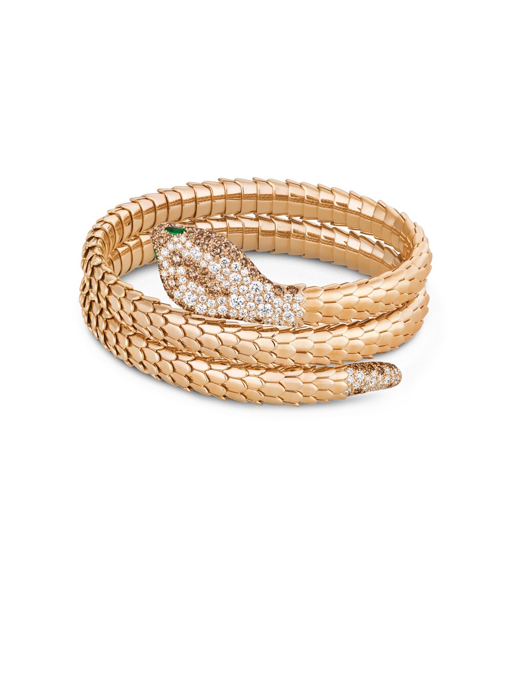 Pulsera rígida Twist Oro rosado de 18k, 195 brillantes de 3,23 ct, 2 esmeraldas de 0,1 ct, 6,5 cm de longitud | N.° de referencia 40AR0742
