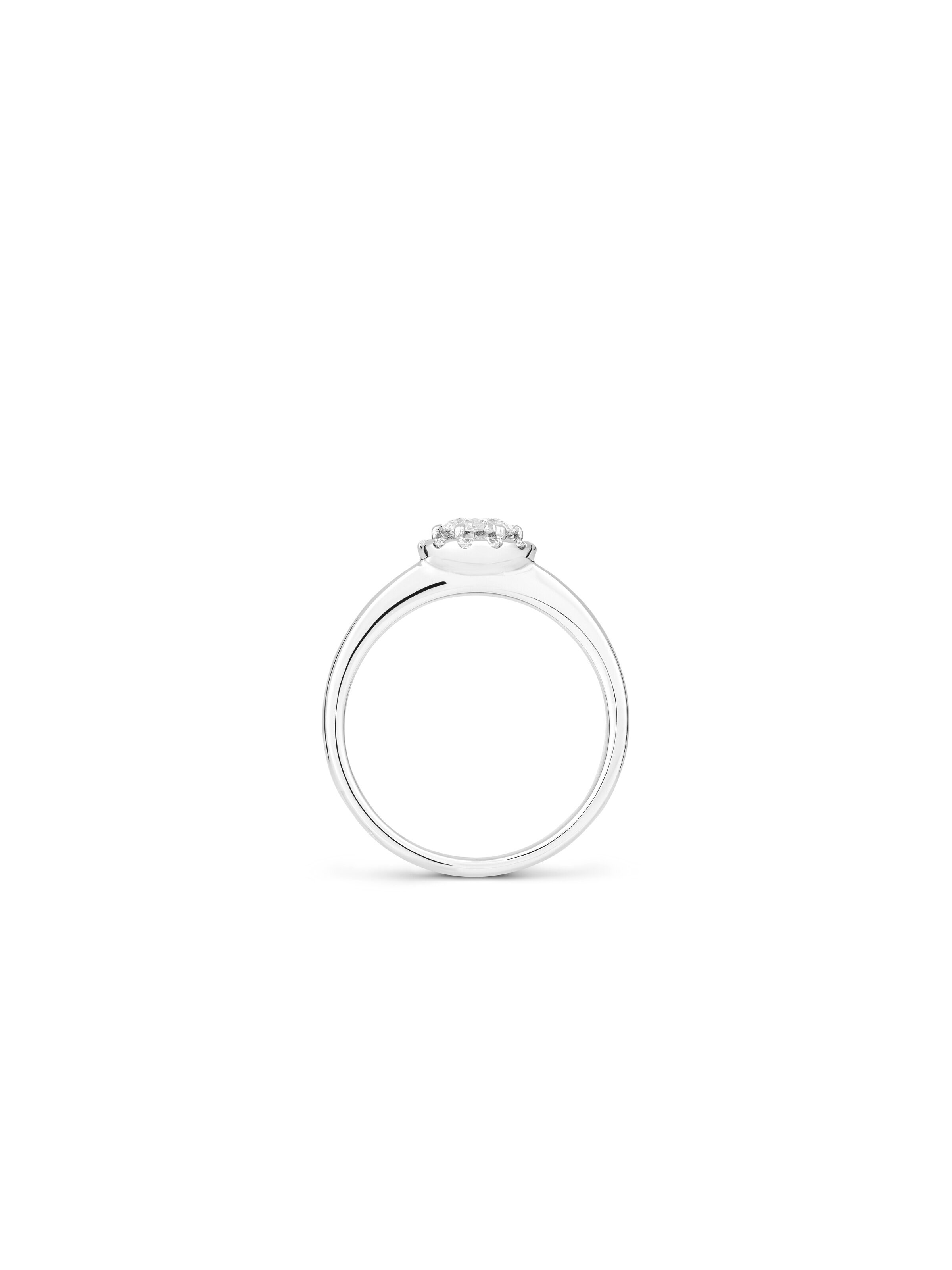 Un suave destello que recuerda a un halo de luz. La sortija Crown BY KIM, de oro blanco de 18k, destaca un brillante de 0,50 ct, rodeado por otros doce brillantes con un total de 0,18 ct. El engaste en garras orlado realza cada piedra por todos los ángulos y confiere al diseño una especial tridimensionalidad. Dividido en dos niveles, crea la impresión de una delicada corona. Una elegante joya que aporta un toque expresivo tanto a los looks cotidianos como a los momentos festivos.
