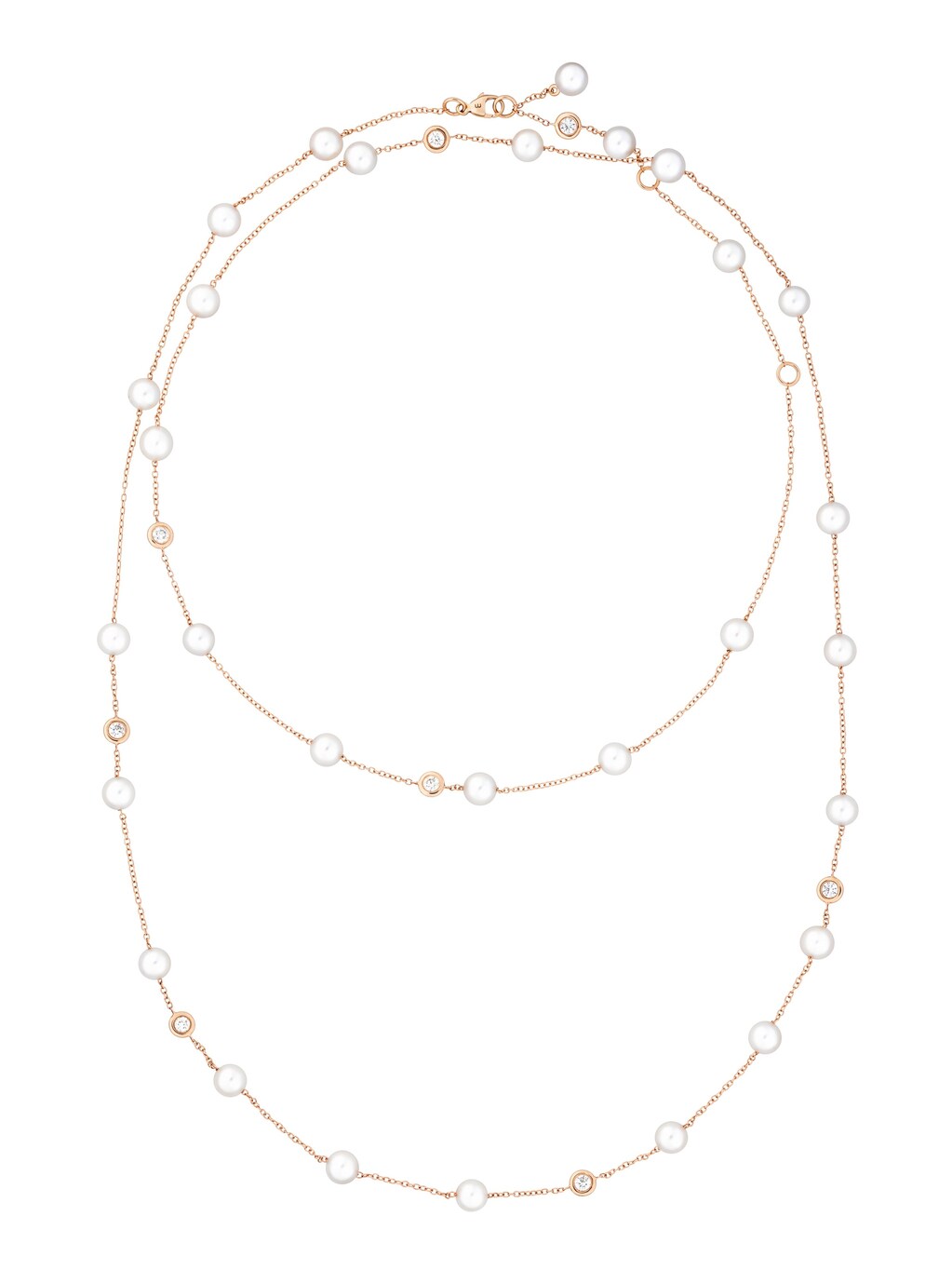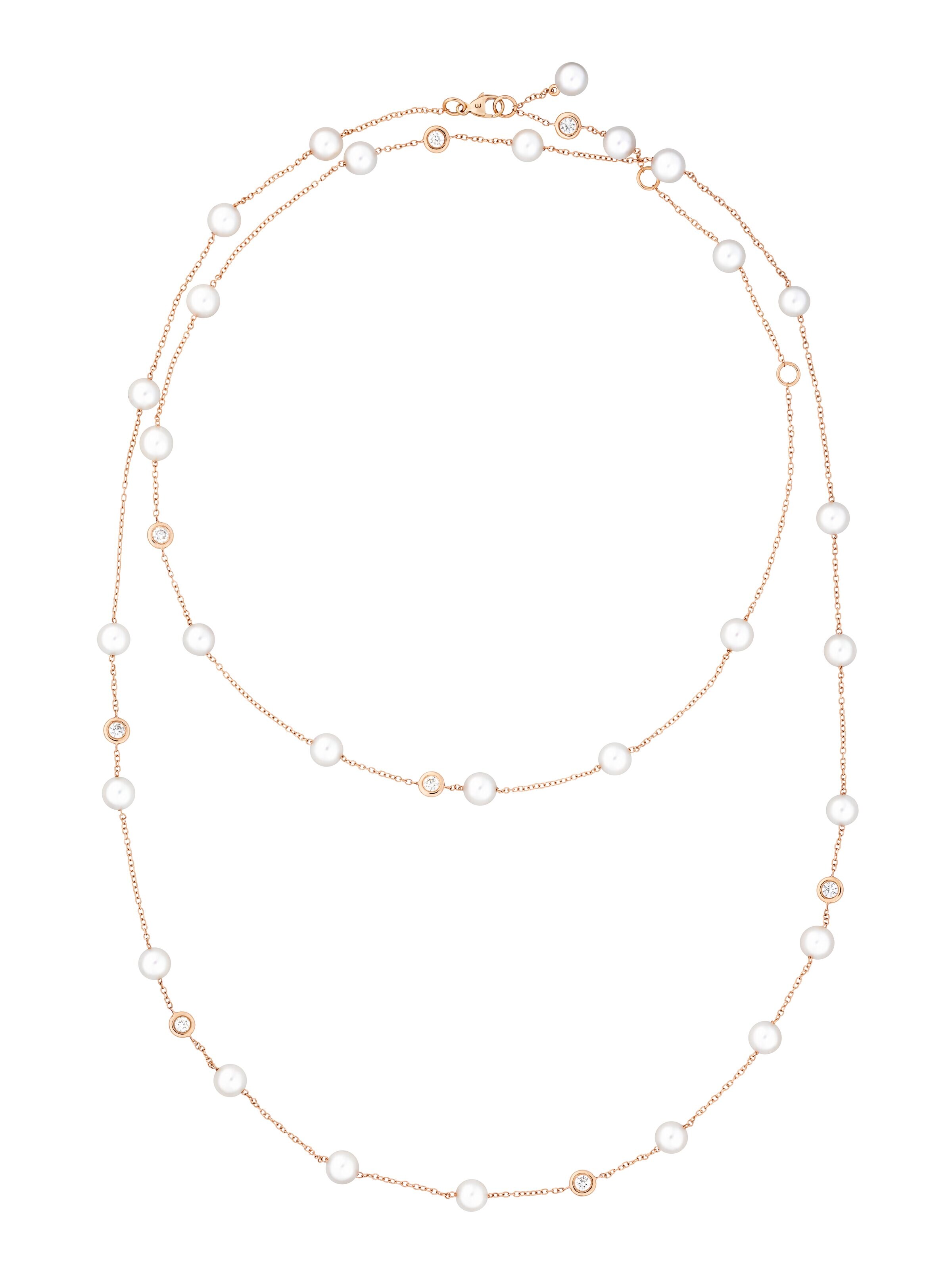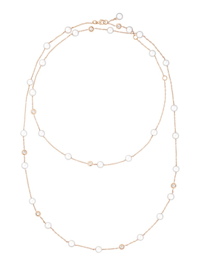 cadena Classics Oro rosa de 18k, 8 brillantes de 0,88 ct, 29 perlas cultivadas Akoya, 116 cm de longitud. | N.° de referencia 30KE0512
