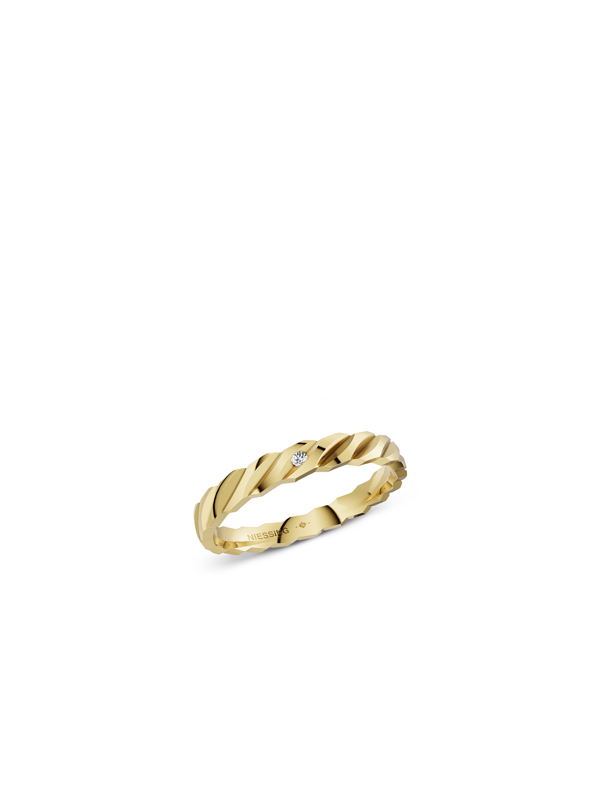 La alianza Woven Love de Niessing encarna la unión de una forma delicada y, al mismo tiempo, impresionante. El cuerpo de la sortija recuerda a finas cintas entrelazadas y despliega una dinámica viva que recoge la idea de una relación de pareja muy unida. Fabricada en oro Classic Yellow de 18k, la sortija tiene un cálido tono dorado con un aire de elegancia atemporal que realza cualquier tono de piel. Un brillante de 0,005 quilates está discretamente integrado y aporta un sutil toque resplandeciente que atrae la mirada una y otra vez. La alianza resulta muy cómoda de llevar en el dedo y se convierte en un símbolo diario de cercanía y confianza que acompañará a su persona favorita durante toda la vida.