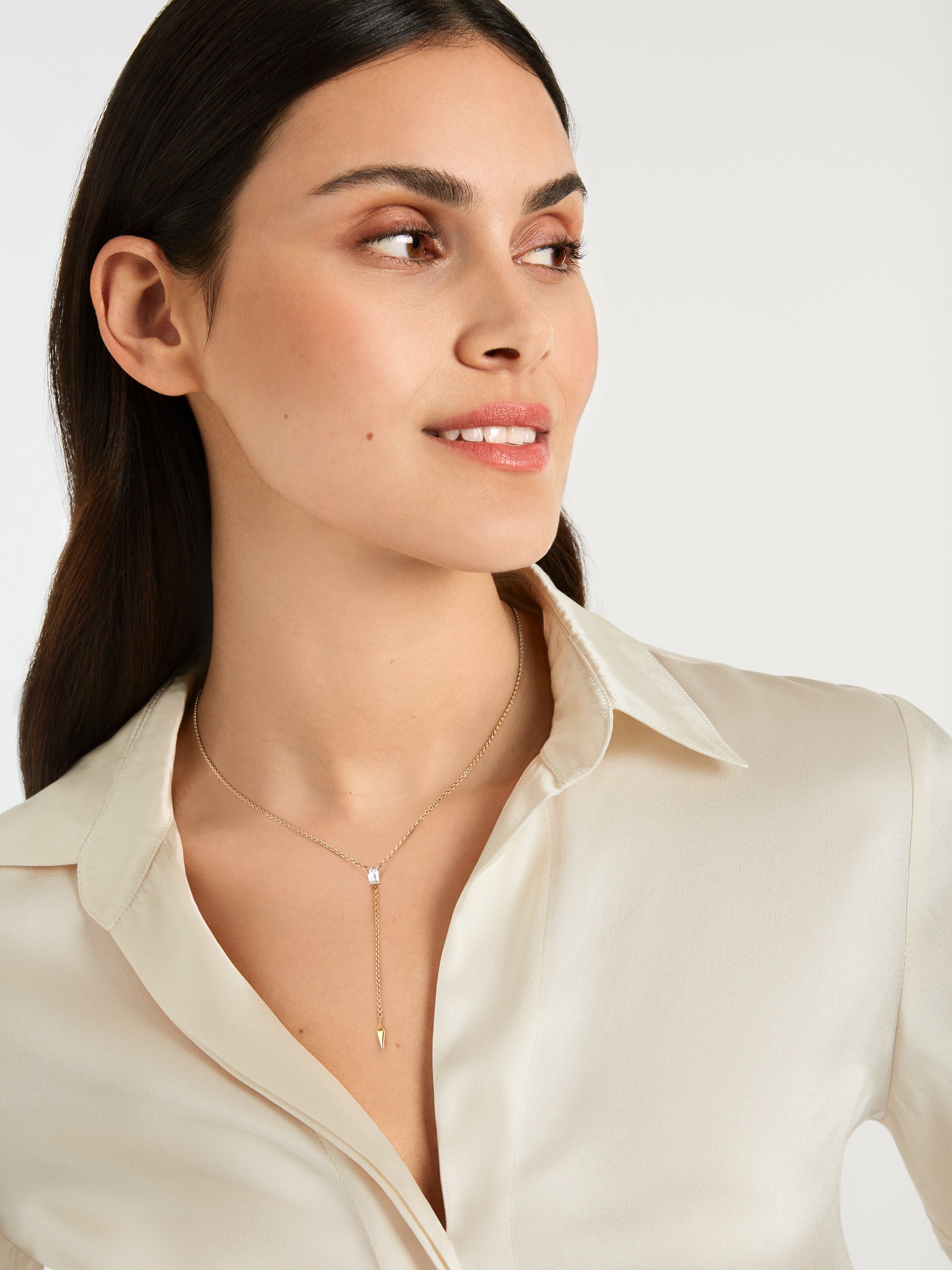 Un diseño purista reducido a lo esencial con un brillo profundo. El collar en Y Wempe x ASHOKA® de oro rosado de 18k revela el sentido de la moda de quien lo lleva de forma discreta. Esta cadena en Y mide 44 centímetros y está fabricada en nuestro taller. En su centro se encuentra un resplandeciente diamante de 0,29 ct con la exclusiva talla ASHOKA®. Un elegante complemento para cualquier ocasión que aporta un toque de lujo a cualquier atuendo.