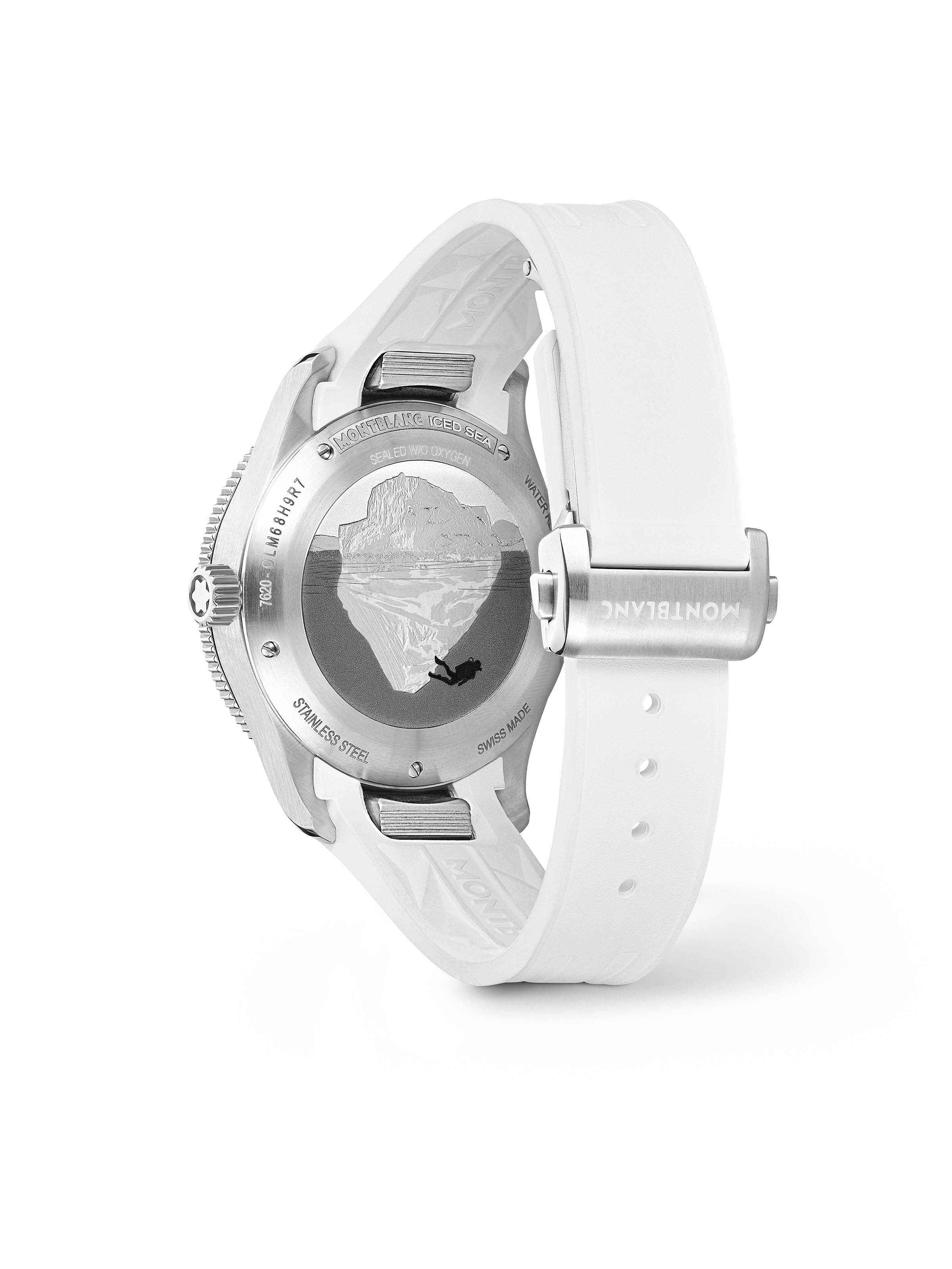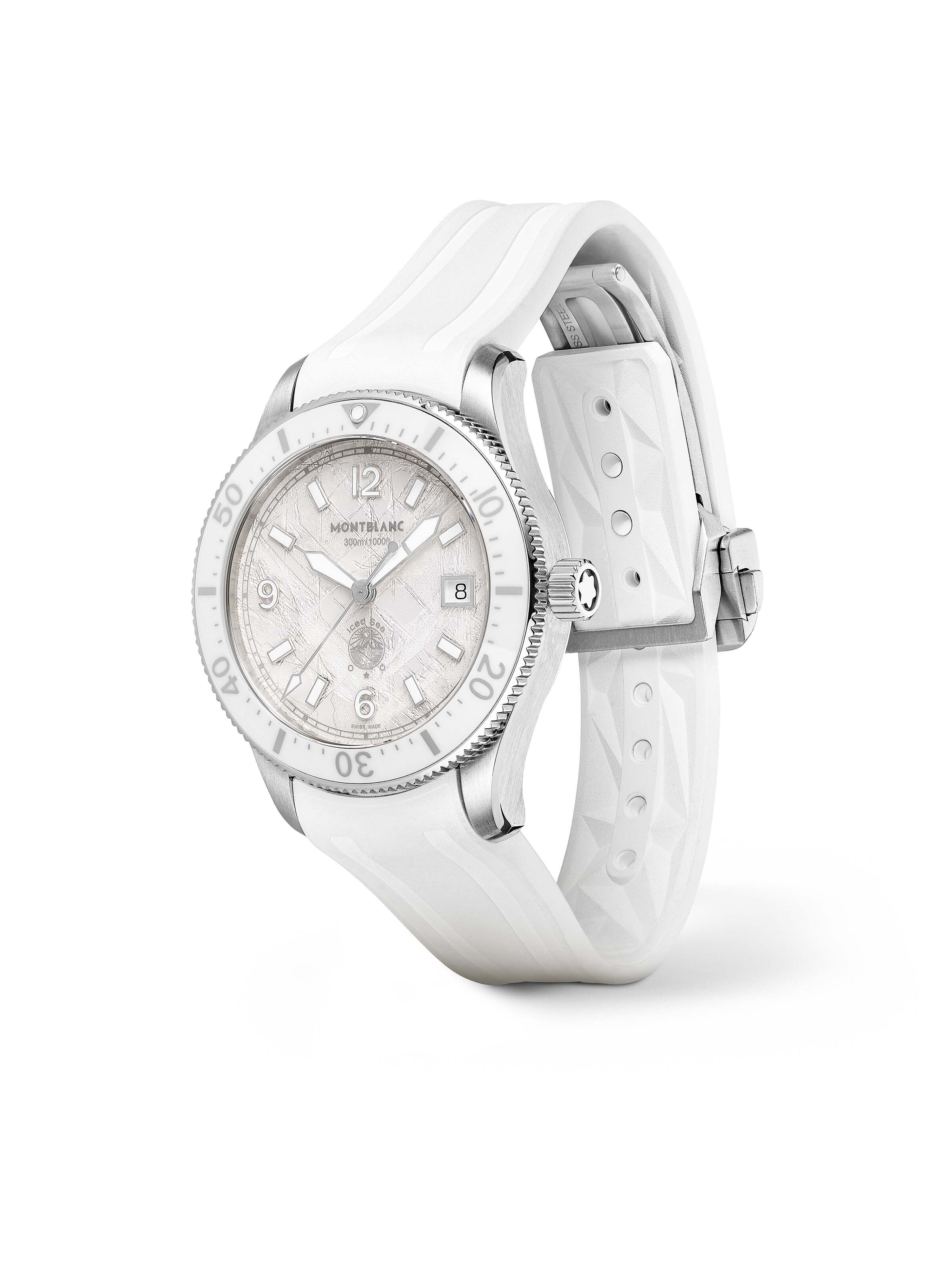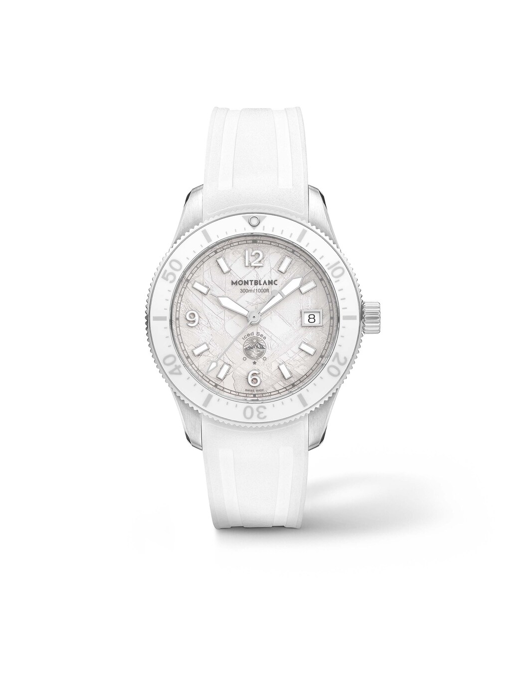 1858 Iced Sea Automatic Date 0 Oxygen 38 mm, acier avec bracelet en caoutchouc blanc, calibre automatique avec affichage de la date | Numéro de référence MB000083