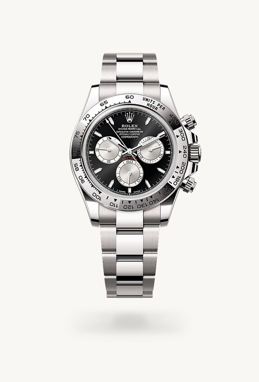 Avec son échelle tachymétrique, ses trois compteurs et ses poussoirs, le Cosmograph Daytona a été créé pour être l’instrument de chronométrage par excellence des pilotes de course d’endurance. La lunette présente une échelle tachymétrique qui permet de lire la vitesse moyenne sur une distance donnée en fonction du temps chronométré. Cette échelle fait du Cosmograph Daytona l’instrument idéal pour mesurer une vitesse allant jusqu’à 400 unités par heure, que ce soient des kilomètres ou des miles.