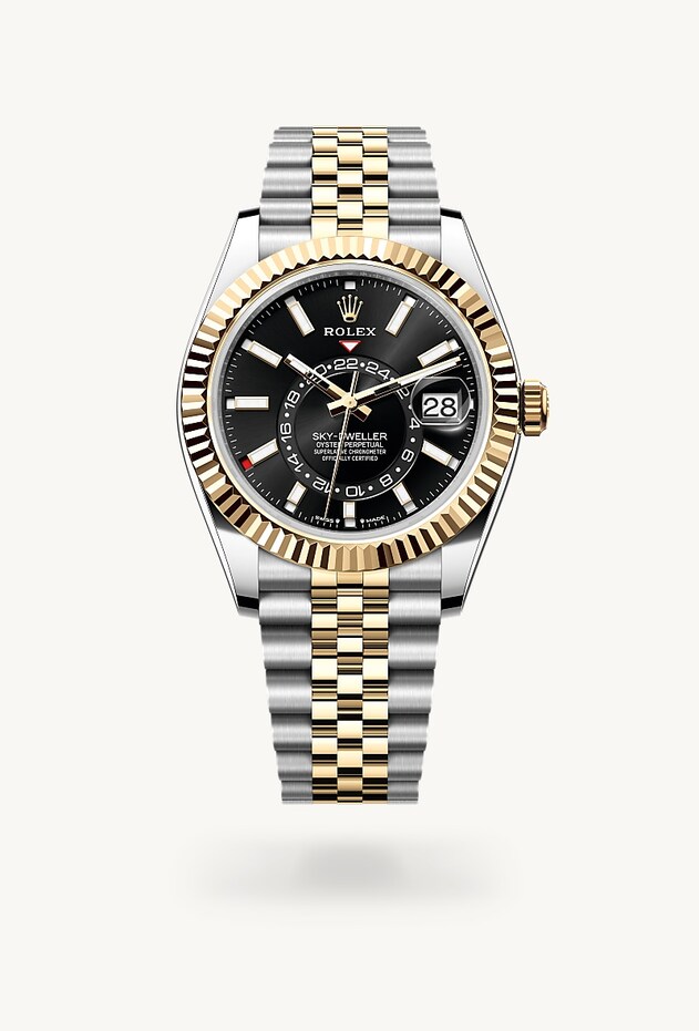 La lunette cannelée est l’élément signature de Rolex. Au départ, les cannelures de la lunette Oyster avaient un but fonctionnel : elles servaient à visser la lunette sur le boîtier, de manière à garantir l’étanchéité de la montre. De plus, elles étaient identiques aux cannelures présentes sur le fond de boîtier, lui aussi vissé sur le boîtier pour la même raison, au moyen d’outils Rolex spécifiques. Avec le temps, les cannelures sont devenues un élément purement esthétique, la signature de Rolex. Aujourd'hui la lunette cannelée est une spécificité de la marque, exclusivement en or. La Sky‑Dweller dispose d’un mécanisme d’interaction entre la lunette tournante, la couronne de remontoir et le mouvement : le système Ring Command, qui permet au porteur de la montre de sélectionner tour à tour les fonctions et de les régler de manière simple, rapide et sécurisée.